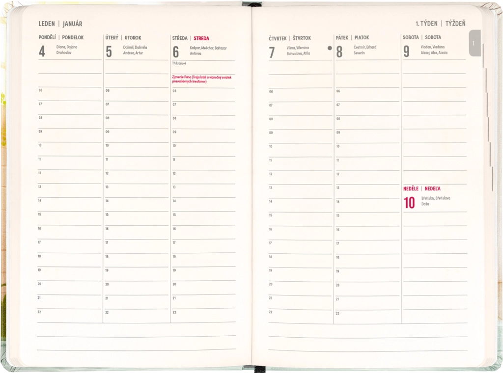 - Týdenní sloupcové, česko‑slovenské se jmény a svátky