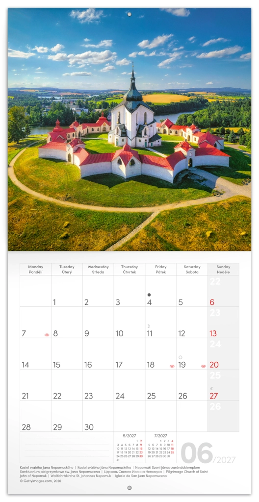 Objevte kouzlo českých měst, památek a přírodních scenérií každý měsíc s poznámkovým kalendářem pro rok 2027. Kompaktní rozměr 20 × 20 cm šetří místo na stěně i na pracovním stole a zároveň poskytuje dost prostoru pro každodenní zápisky. Kvalitní papír a ostrý tisk zvýrazní barvy i detaily fotografií.