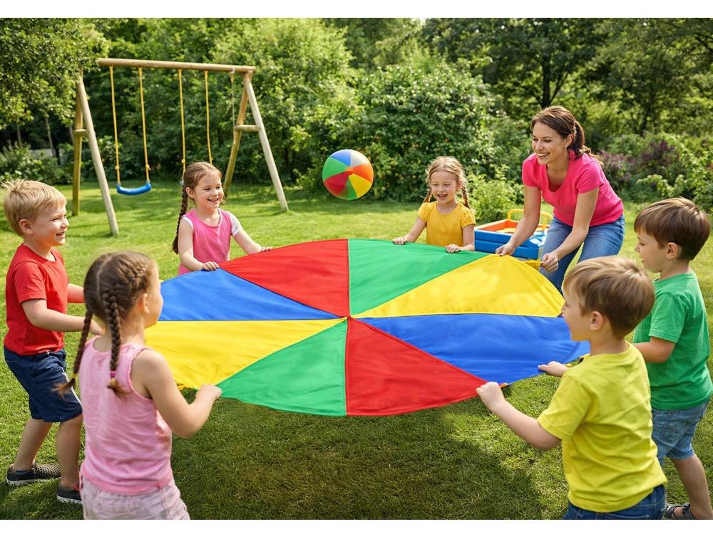 Aktivní hry s padákem podporují komunikaci, domluvu a společný rytmus skupiny. Děti se učí spolupracovat a zažívat radost z týmového úspěchu.