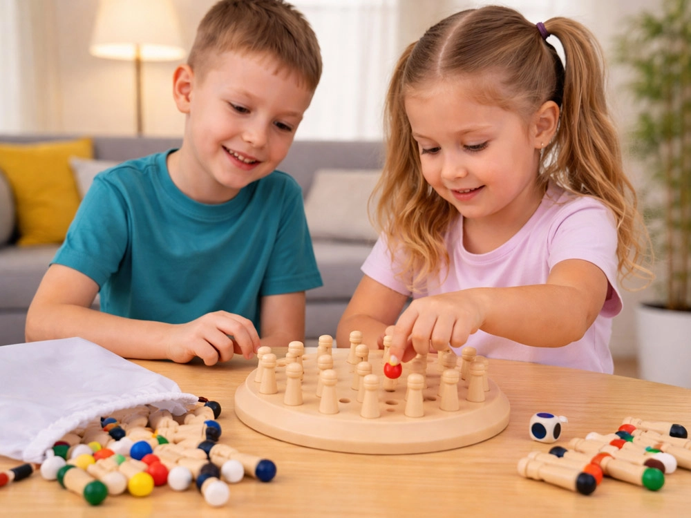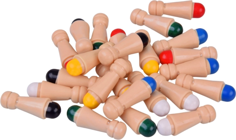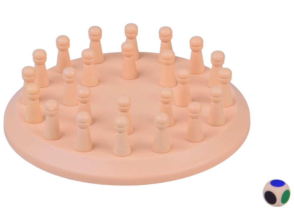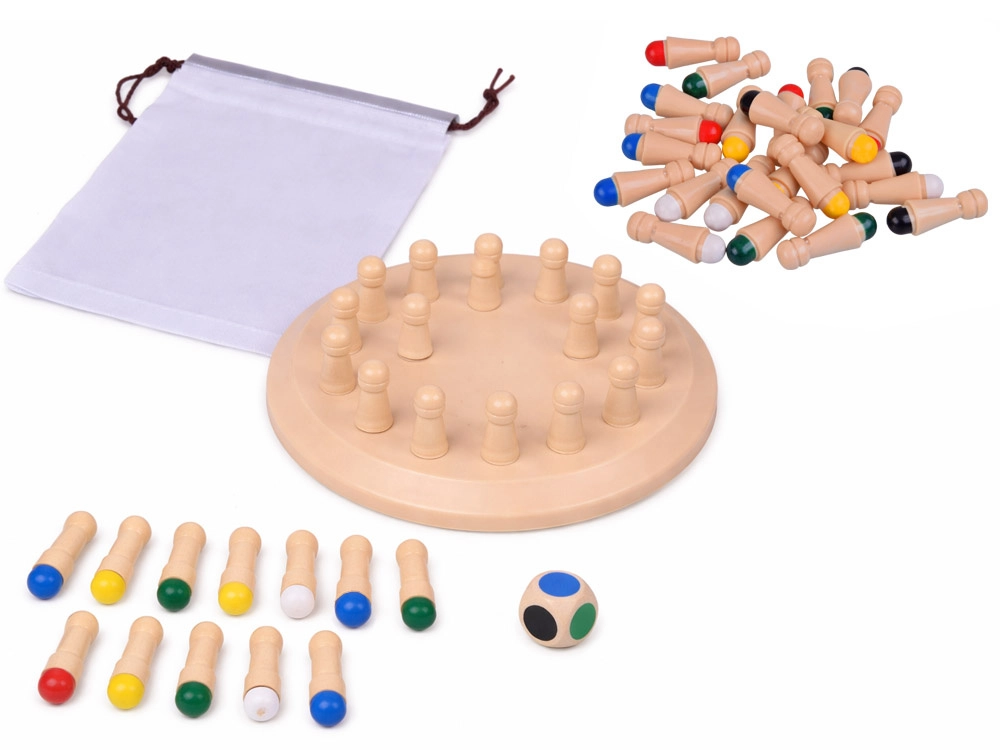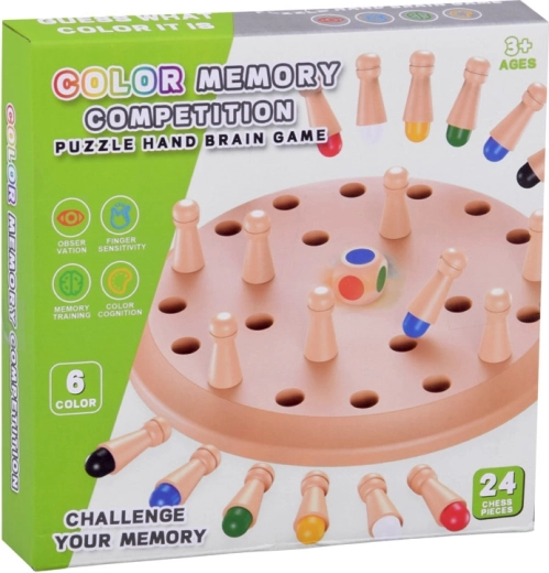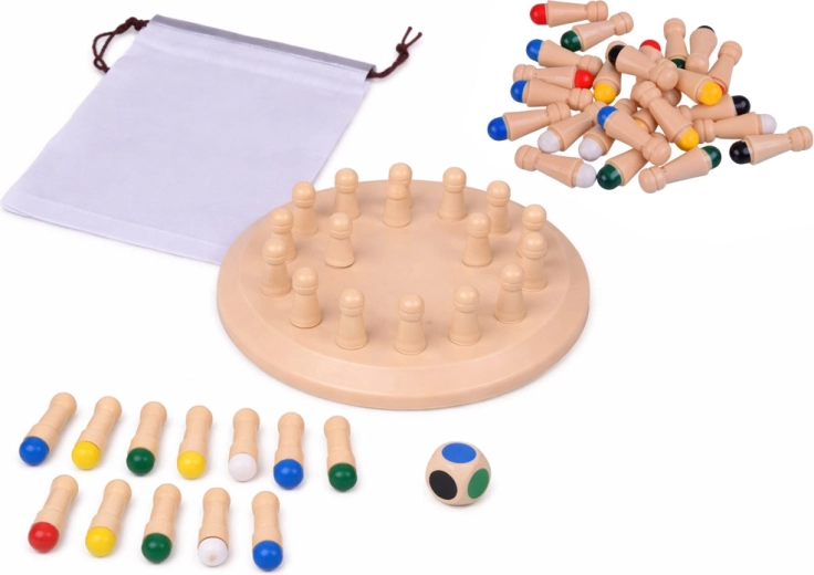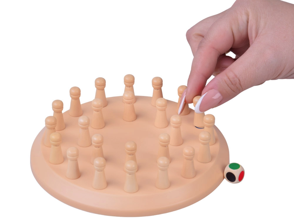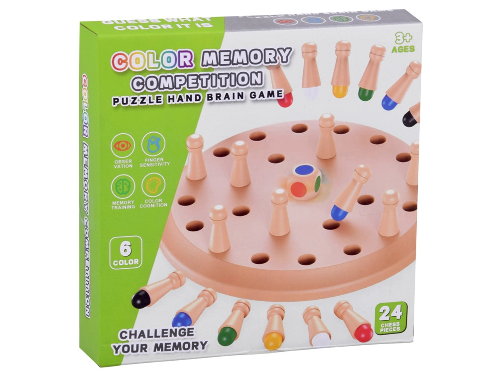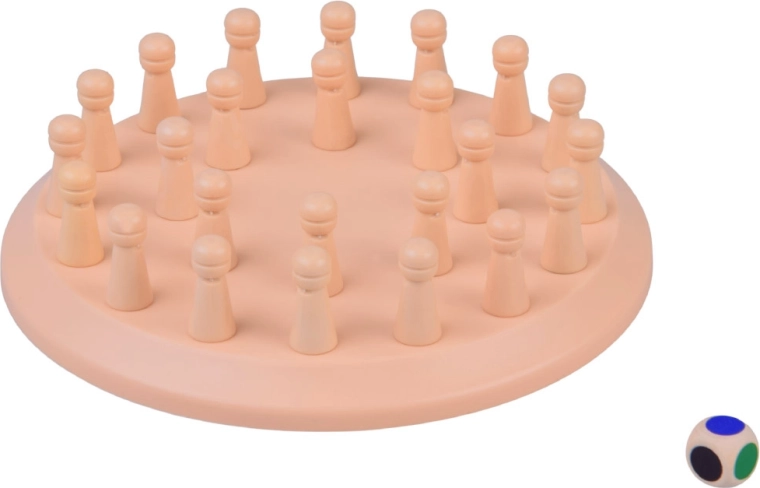 Dřevěná kruhová deska s otvory a kolíčky ukrývá barvy, které si hráči musí zapamatovat. Po hodu barevnou kostkou se snaží odhalit kolíček odpovídající barvě. Pokud je volba správná, kolíček získávají, pokud ne, vrací se zpět – na řadě je další hráč. Hra je skvělá pro rozvoj vizuální paměti, souvislostí a jemné motoriky.