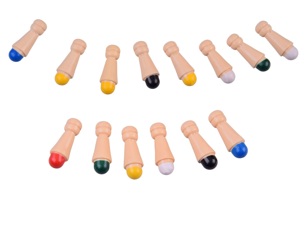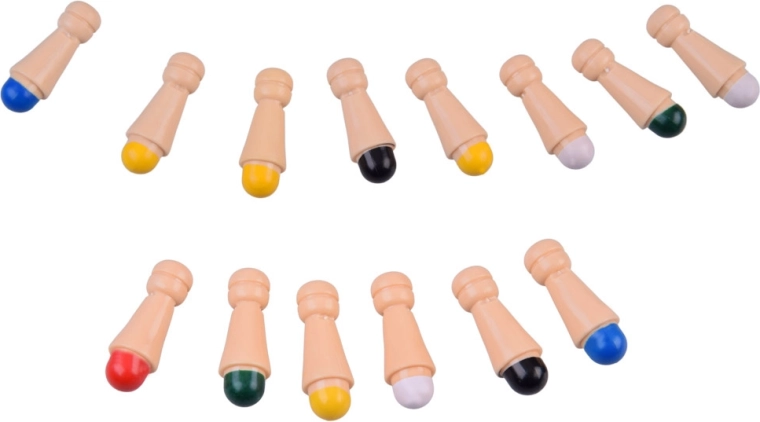 Pravidla lze snadno obměňovat: vyhrává ten, kdo jako první nasbírá 4 kolíčky stejné barvy, nebo ten, kdo získá 6 různých barev, případně hráč s největším počtem kolíčků na konci hry. Přírodní dřevo, hladké zpracování a praktický textilní sáček pro uložení dílů dělají z této hry odolného parťáka na každodenní hraní.