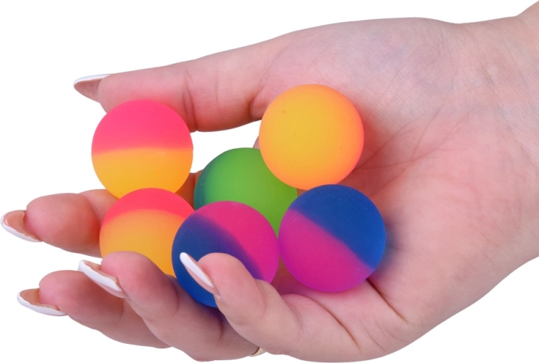Tato pestrá sada skákacích míčků přináší spoustu pohybu a radosti. Dvoubarevné neonové designy zaujmou na první pohled a vysoká pružnost zajišťuje energické odskoky. Míčky jsou kompaktní, lehké a příjemné na úchop – připravené pro spontánní hru kdekoli.
