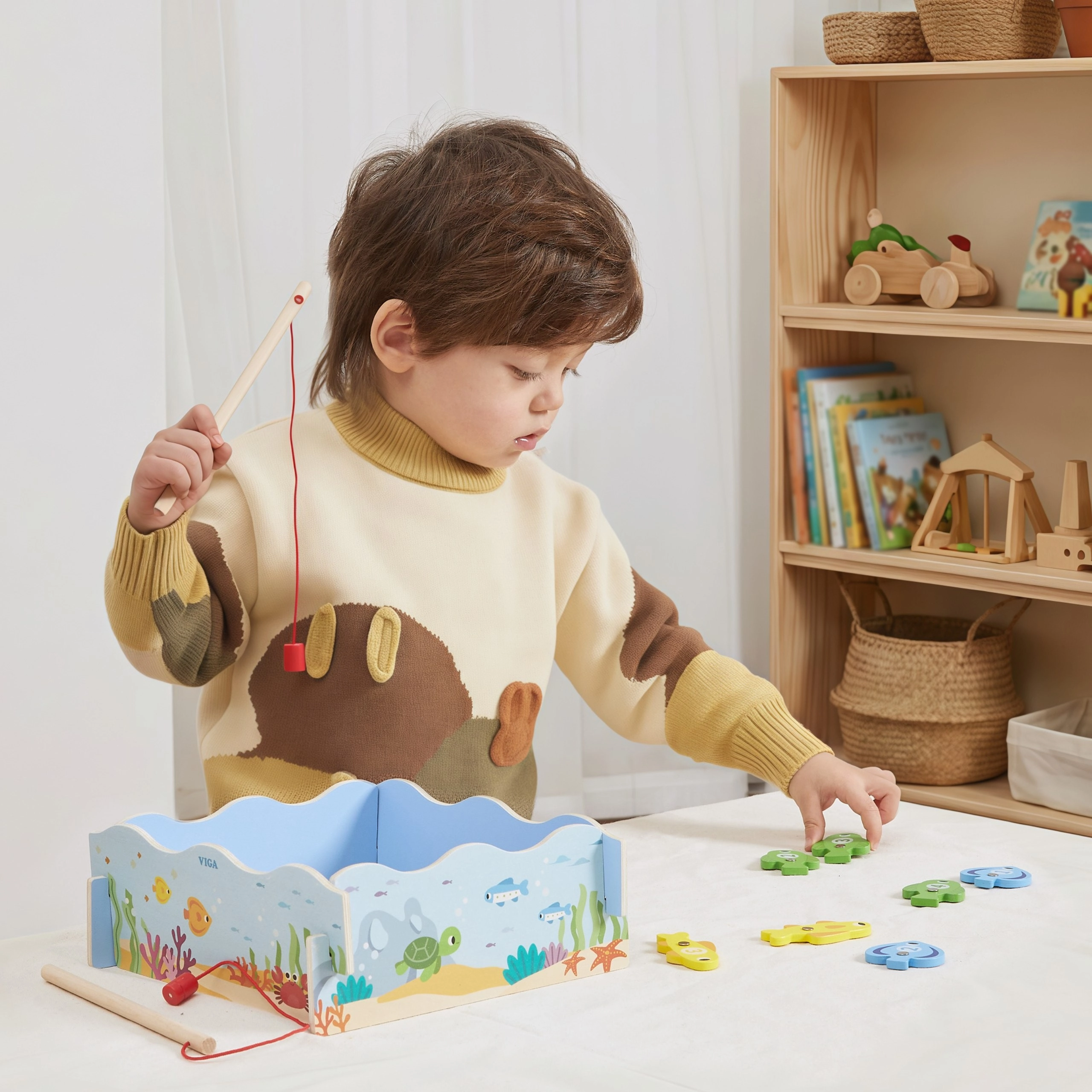 Magnetické rybaření rozvíjí jemnou motoriku, přesnost úchopu a koordinaci oko–ruka už od 18 měsíců.