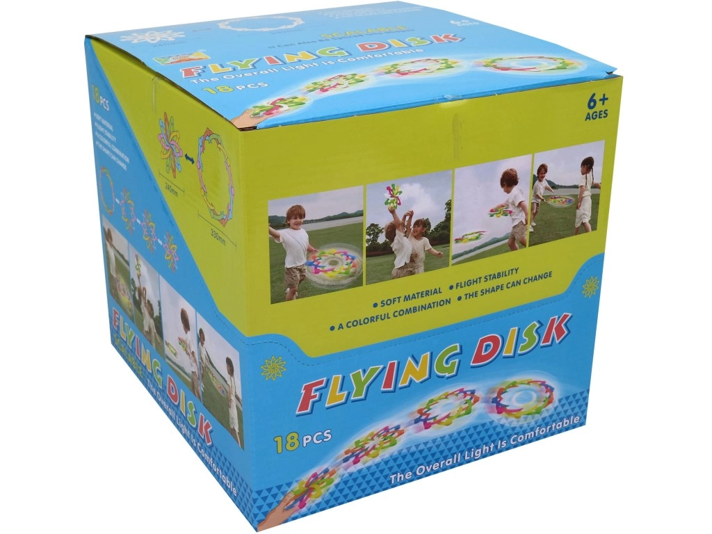 Tento barevný a lehký létající talíř je skvělou volbou pro rodinné výlety do parku i zahradní radovánky. Díky rozložitelnému designu se snadno skladuje a přenáší, přitom si zachovává stabilní letové vlastnosti a plynulý klouzavý let.