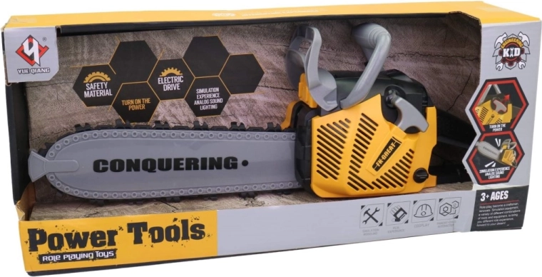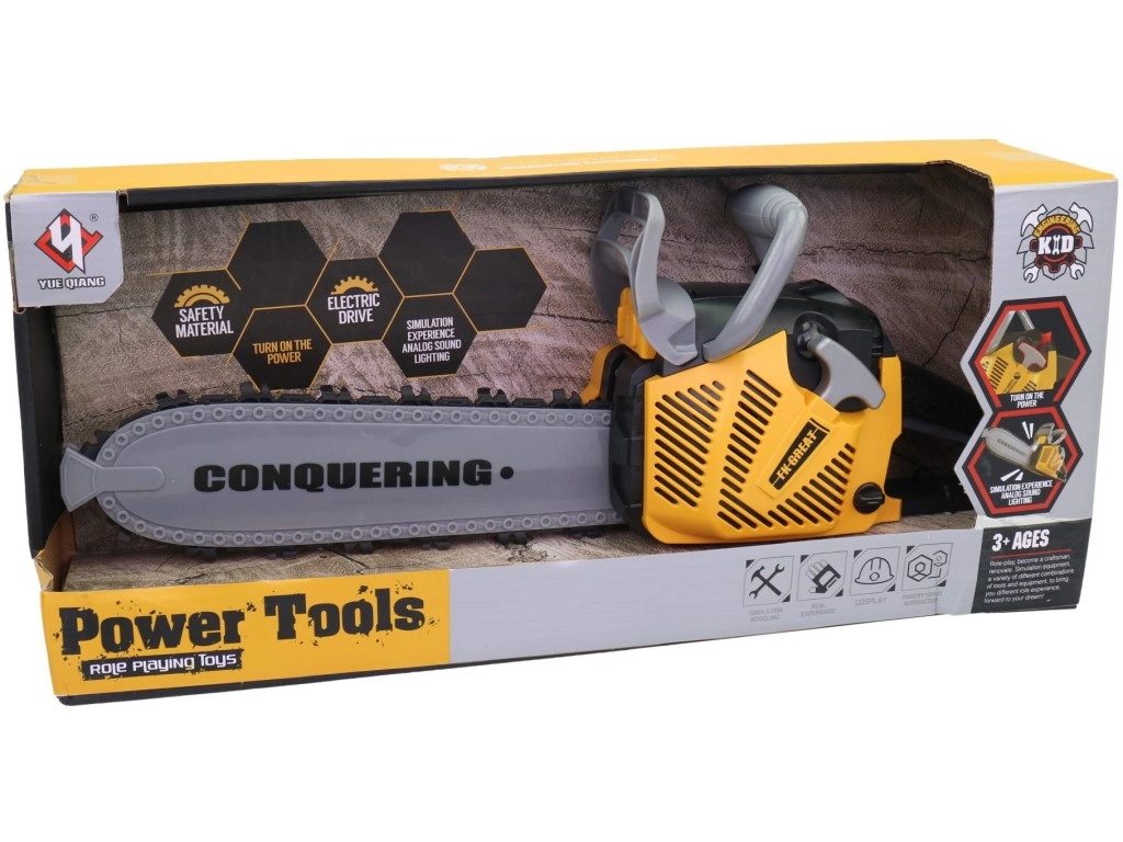 Díky délce 42 cm se pila skvěle drží a její ovládání je jednoduché i pro menší děti. Hračka je dodávána v otevřeném boxu a je určena pro děti od 3 let. Ke spuštění jsou potřeba 3× AAA baterie (nejsou součástí balení).