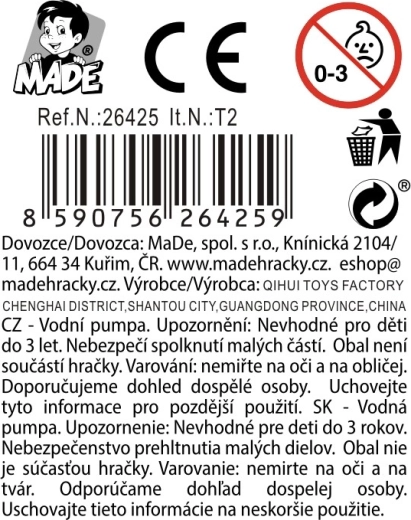 Objevte zábavu s vodní pumpou pro děti o délce 46 cm, která podporuje kreativní hraní i učení o vodě. Vyrobena z kvalitního plastu, vhodná od 3 let a dodávaná v displej boxu po 12 kusech – ideální pro zahradu, bazén i hřiště.