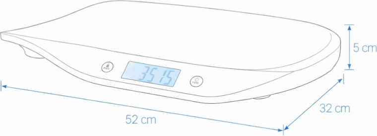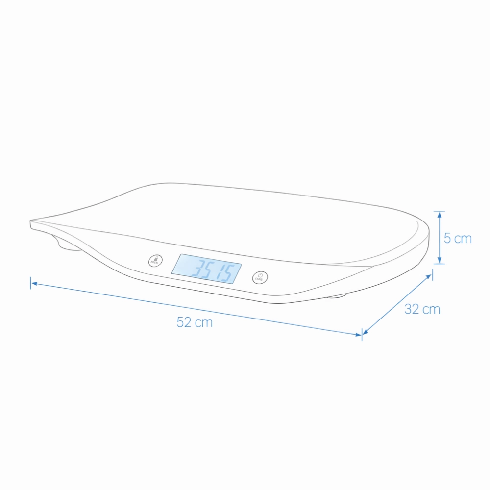 Ergonomická, široká a jemně zakřivená plocha chrání miminko před sklouznutím a zvyšuje komfort při vážení. Jednoduché a intuitivní ovládání, automatické vypnutí a napájení dvěma AAA bateriemi dělají z této váhy ideální volbu pro každodenní domácí použití.