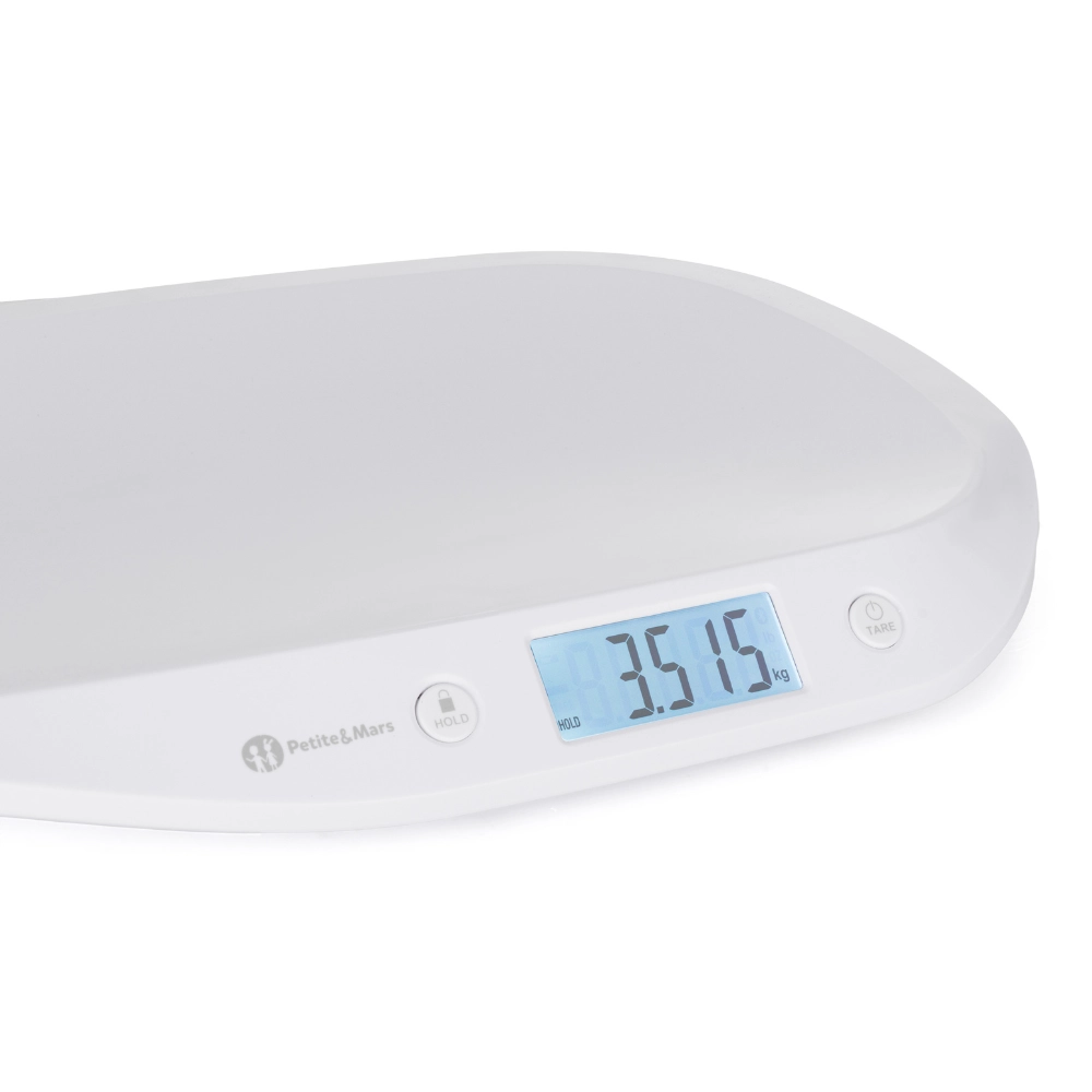 Spolehlivě sledujte růst vašeho miminka s digitální kojeneckou váhou PETITE&MARS Balance. Nabízí podsvícený LCD displej pro snadné čtení, automatickou i manuální funkci HOLD pro stabilní výsledek i při pohybu dítěte a funkci TARE pro odečtení hmotnosti dečky. Ergonomicky zakřivená vážicí plocha zajišťuje bezpečí a pohodlí, rozsah vážení je 0,1–20 kg s jemným krokem 5 g a volbou jednotek kg/lb/oz.