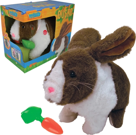 Roztomilý interaktivní králíček Ouško je měkoučký společník pro děti od 3 let. Po stisku tlačítka se pohybuje, hopsá a stříhá oušky, a při přiložení mrkvičky k čumáčku vydává realistické zvuky. Díky dotykovému senzoru a jednoduchému ovládání rozvíjí jemnou motoriku, představivost i reakce na podněty.