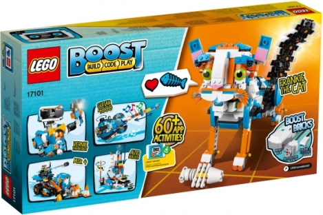 Zkombinuj všestranný stavební systém LEGO® s pokročilou technologií a rozvíjej svou kreativitu. To vše s pomocí úžasné Kreativní sady LEGO BOOST. Stáhni si zdarma aplikaci do svého zařízení a řiď se podrobnými návody, podle kterých sestavíš a naprogramuješ všech 5 multifunkčních modelů. Vyzkoušej si robota Vernieho - pohyblivého a mluvícího robota; model M.T.R.4 (Multi-Tooled Rover 4) - robustní, všestranné vozítko se 4 různými přídavnými nástroji, včetně pružinového vystřelovače; model Guitar4000 - hudební nástroj se špičkovými zvukovými efekty; kocoura Frankieho - interaktivního domácího mazlíčka, který si umí hrát, vrnět a dávat najevo svou náladu; nebo model AutoBuilder - automatickou výrobní linku, která je opravdu schopna vyrábět miniaturní LEGO modely! Oživ své modely díky intuitivnímu rozhraní kódovací aplikace s ikonkami a plň celou řadu úžasných úkolů pro každý z modelů. Součástí této sady je také herní podložka, kterou lze použít při specifických aktivitách, a plakát LEGO BOOST na stěnu tvého pokojíčku. LEGO BOOST aplikace je dostupná pro Windows 10 PCs, vybrané systémi iOS, Android a Kindle.