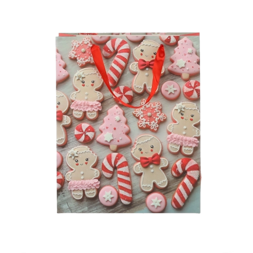 Stylové vánoční balení bez starostí. Dárkové tašky s motivem perníčků a svátečních sušenek dodají každému dárku okouzlující sezónní vzhled. Kvalitní papír o gramáži 157 g/m² zajišťuje výbornou pevnost, díky níž obsah bezpečně dorazí k obdarovanému.