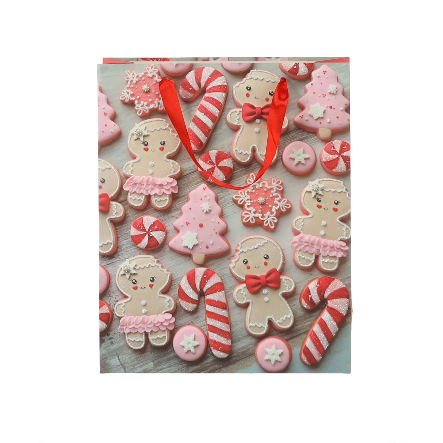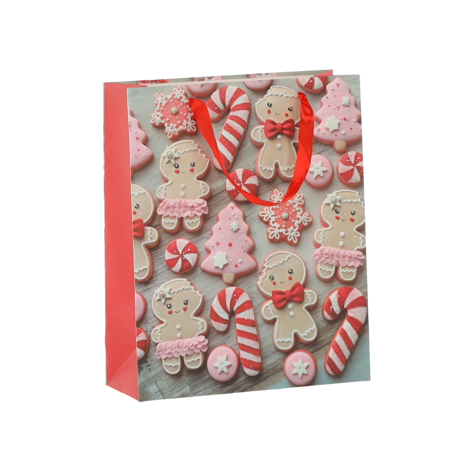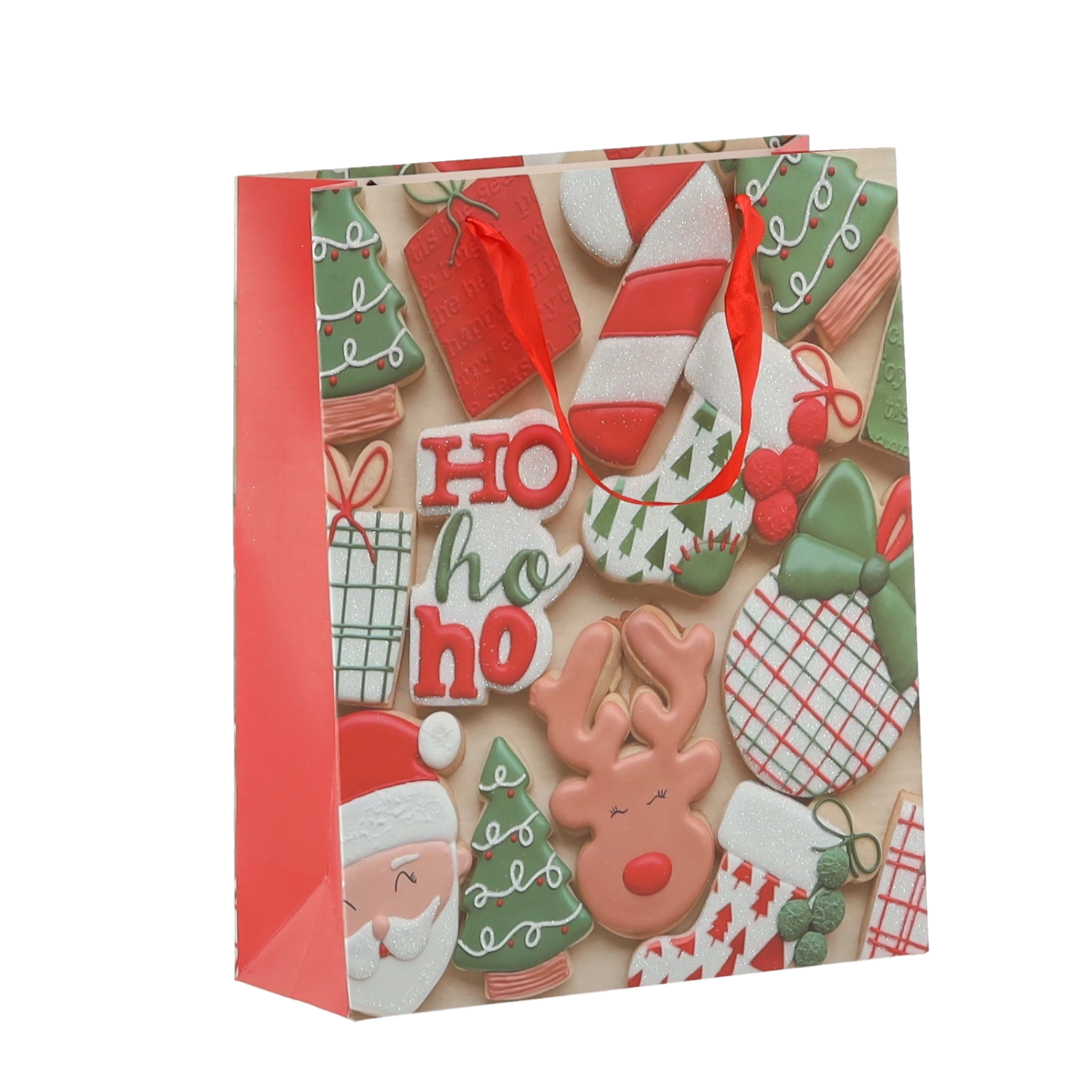 Praktická sada 12 ks vánočních dárkových tašek v rozměru 18 × 24 × 8 cm pro rychlé a stylové balení menších dárků. Tašky z kvalitního papíru s gramáží 157 g/m² jsou pevné a odolné, mají červené stužkové ucho pro pohodlné nošení a veselý potisk s motivy vánočního cukroví – Santa, sob, stromky či rukavice. Ideální pro kosmetiku, šperky a menší knihy.
