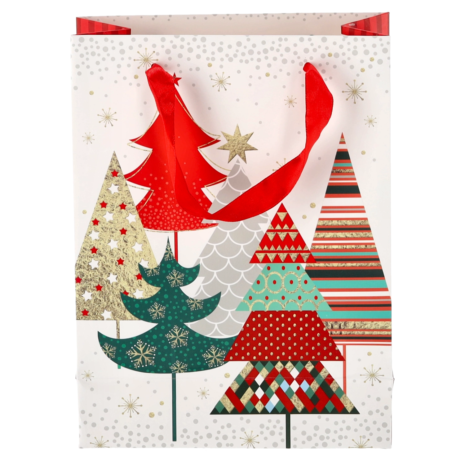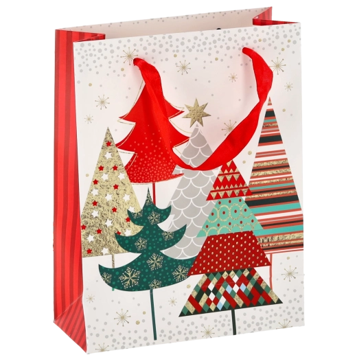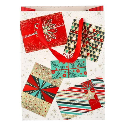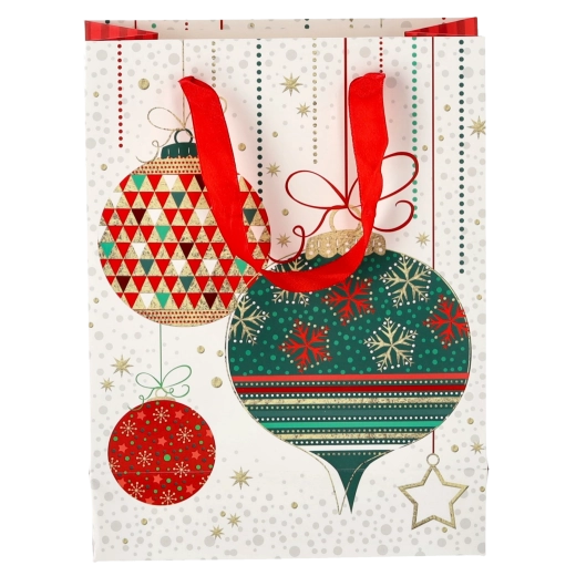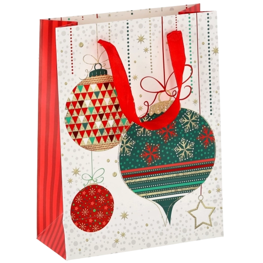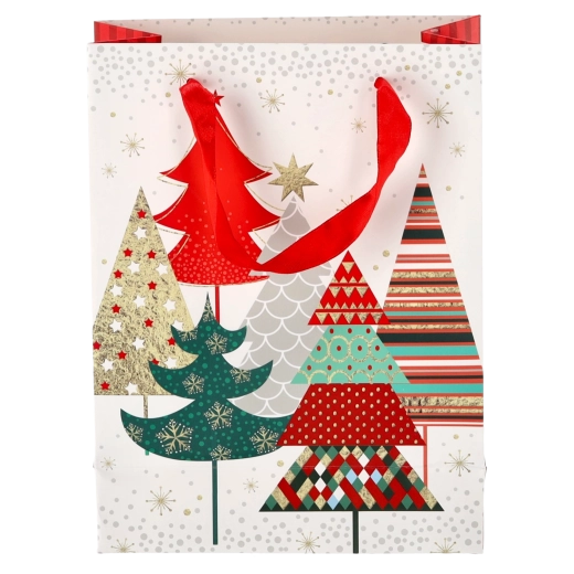 Tato vánoční taška z kvalitního papíru zajišťuje spolehlivou nosnost a pohodlné přenášení díky pevným stužkovým uchům. Lesklý povrch s detailní grafikou podtrhuje prémiový vzhled a zvýrazní styl každého dárku.