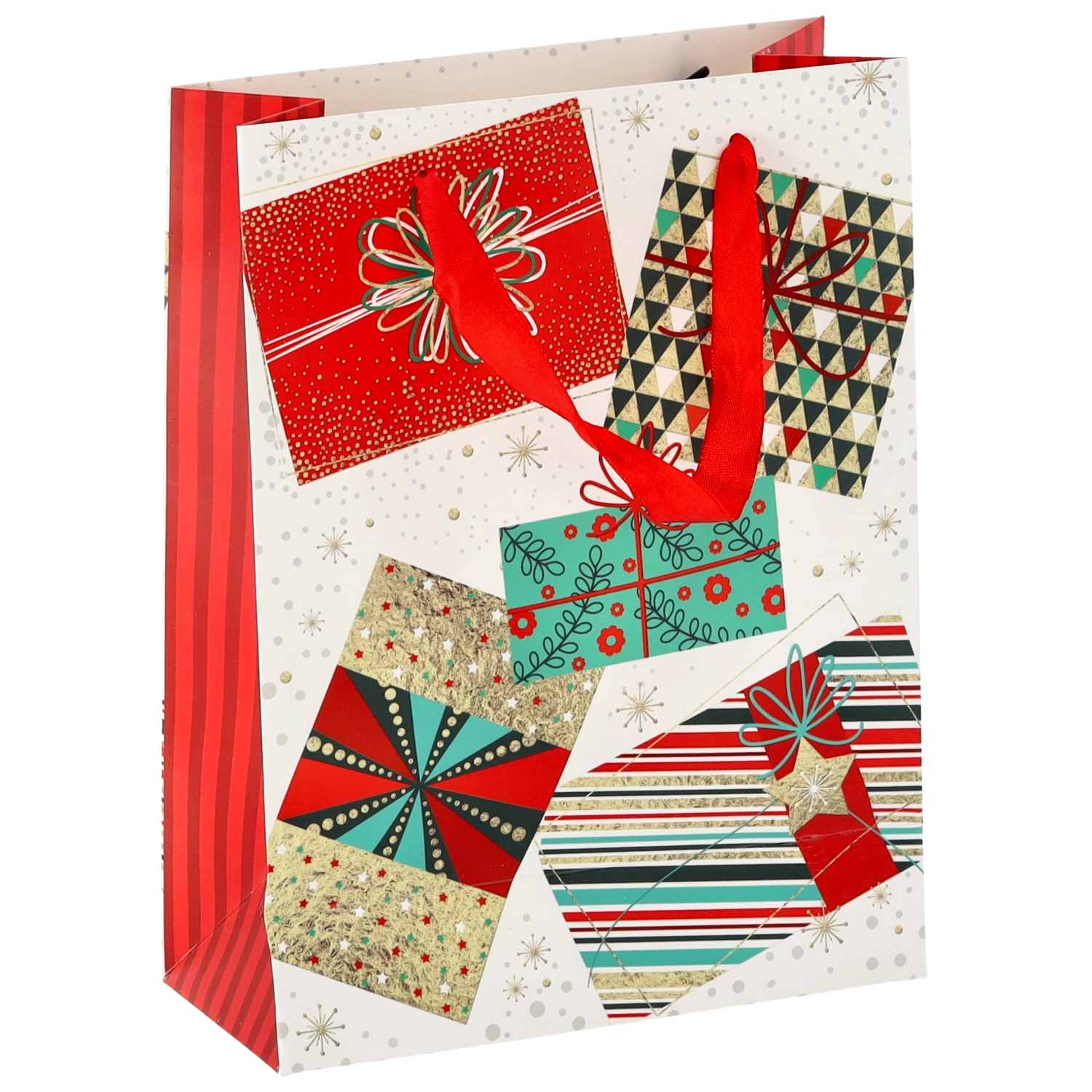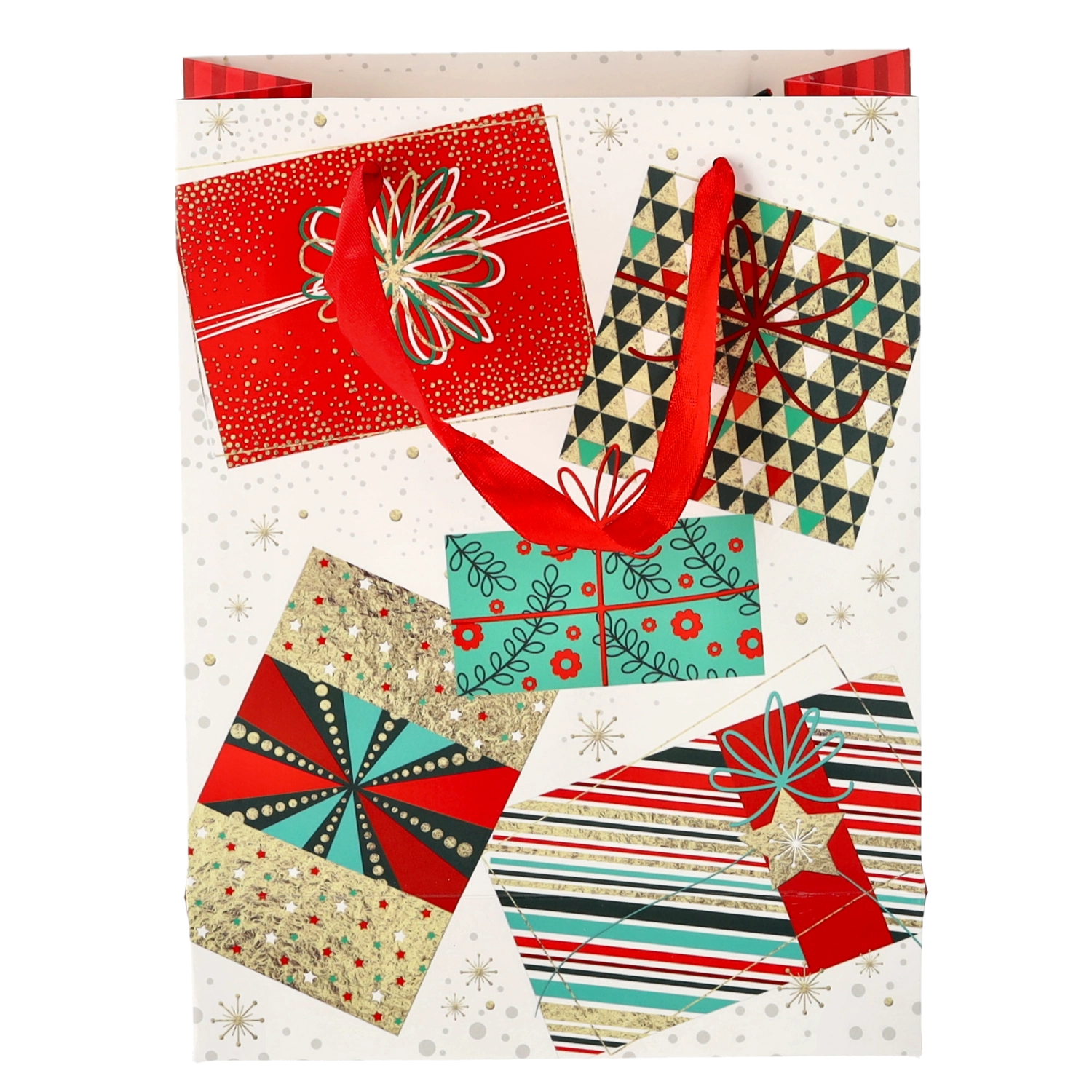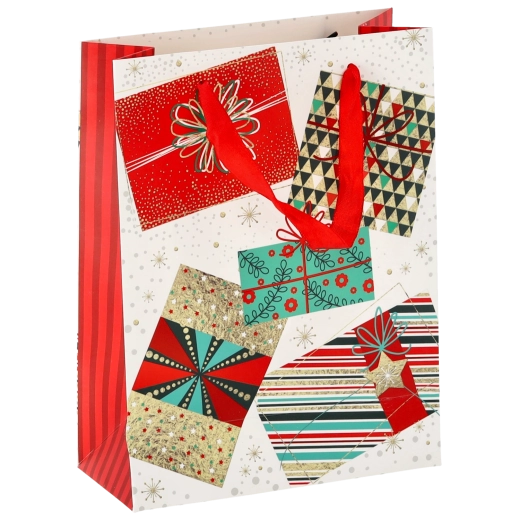 Univerzální formát 18 × 24 × 8 cm je perfektní pro menší a středně velké dárky – od knih a kosmetiky po módní doplňky. Motivy Vánoc v červených, zelených a zlatých tónech vytvářejí slavnostní atmosféru, která potěší už při předávání.