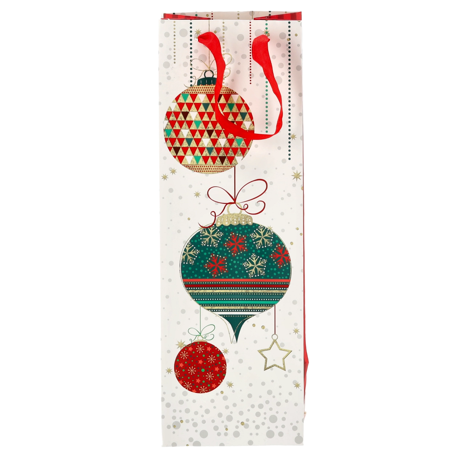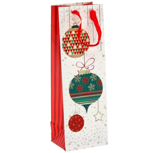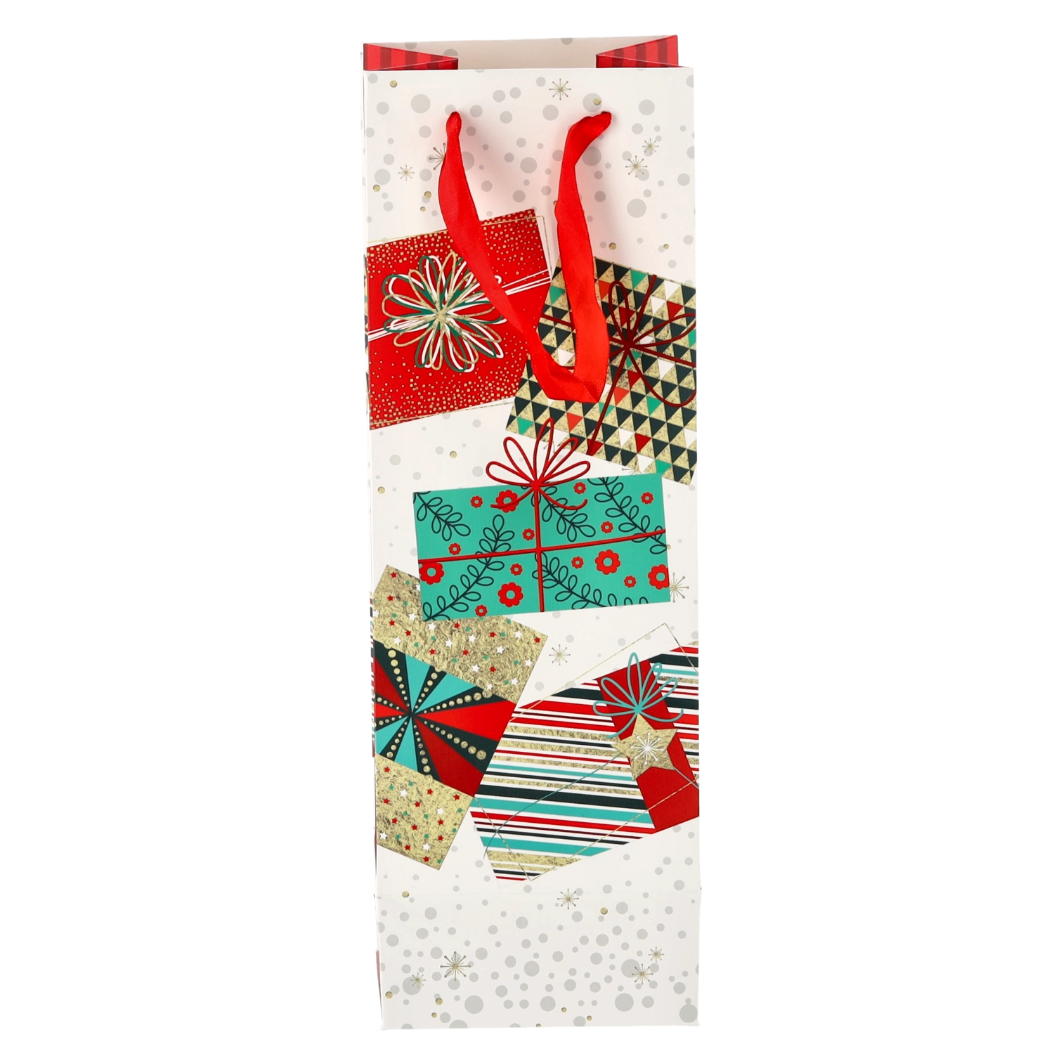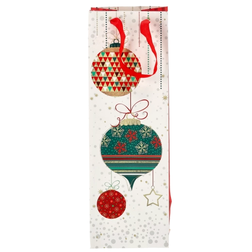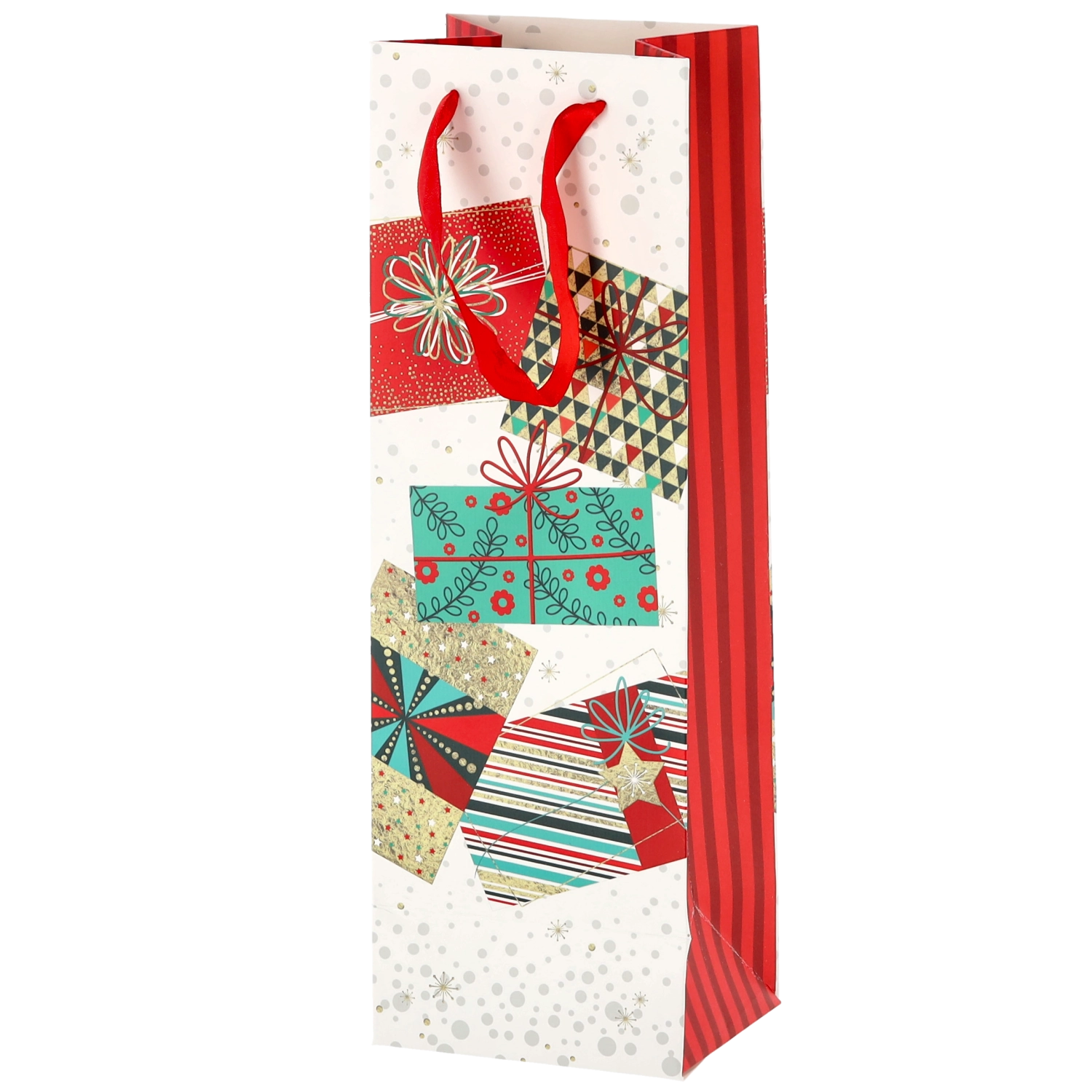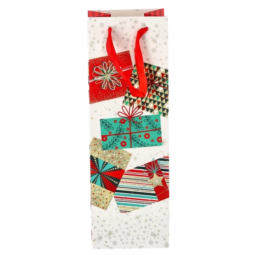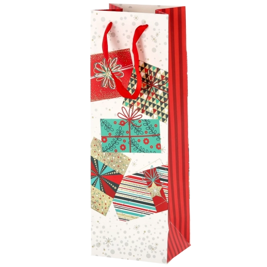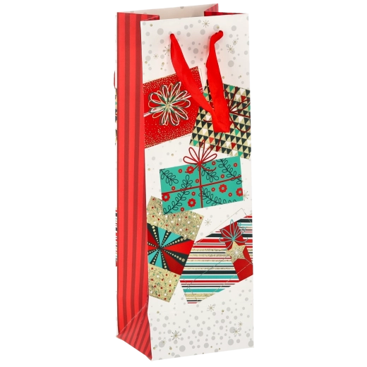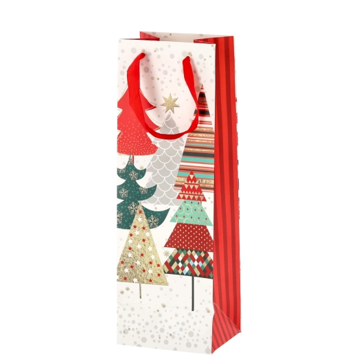 Vytvořte z každé láhve vína reprezentativní dárek. Tato vánoční dárková taška nabízí čistý bílý základ s výraznými svátečními motivy, které vašemu dárku dodají prémiový vzhled. Pevná konstrukce z kvalitního papíru chrání obsah při přenášení.