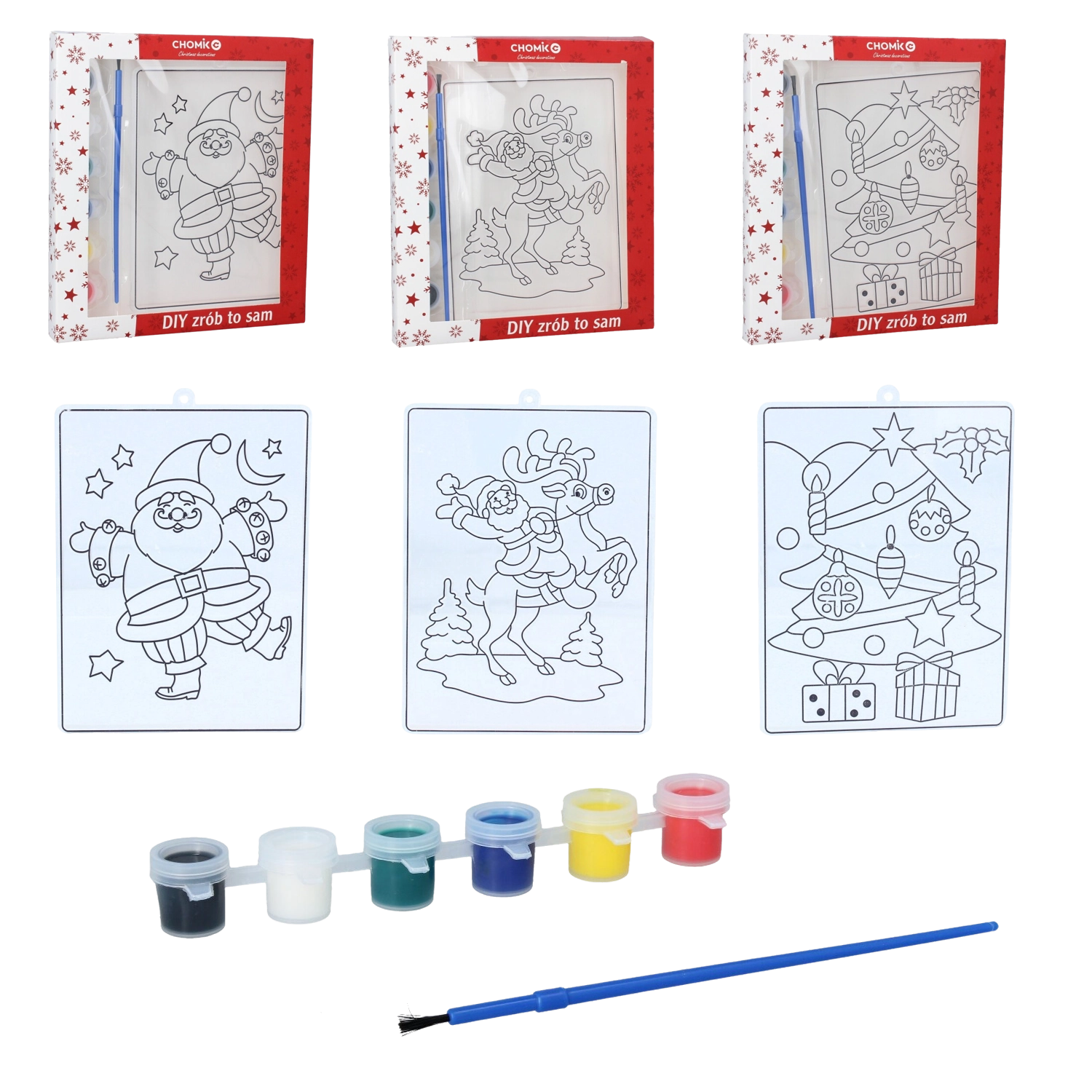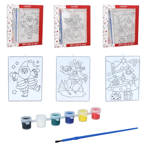 Vybrat si můžete z oblíbených motivů jako je Santa/Mikuláš, sob nebo vánoční stromeček (mix motivů). Díky silným černým obrysům se barvy snadno udrží na místě, což ocení menší děti i začátečníci. Stačí otevřít, malovat a nechat zaschnout – rychlá a čistá kreativní zábava.