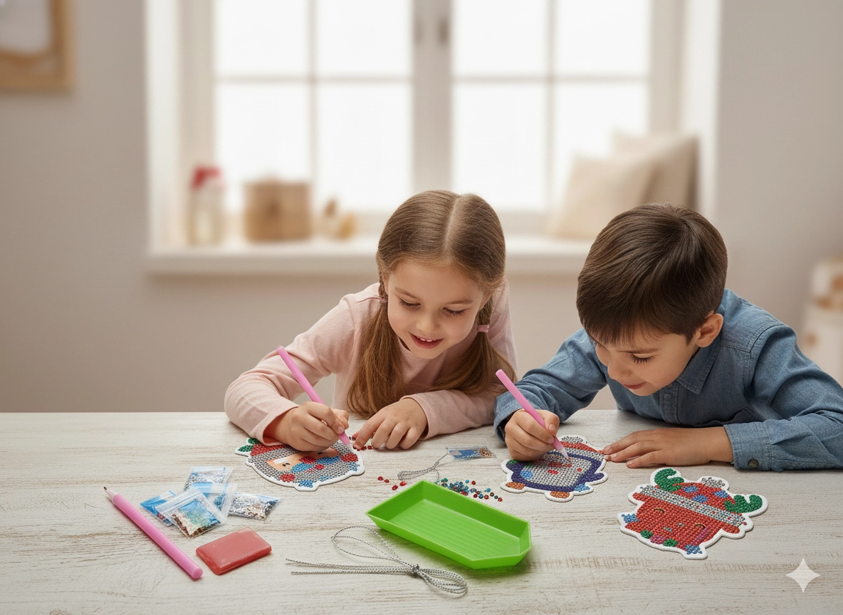 Objevte snadnou a zábavnou cestu k vlastnoručně vyrobeným vánočním dekoracím. Sada obsahuje vše, co potřebujete: lepicí šablony, akrylové kamínky, tácek, vosk a aplikátor. Stačí postupovat podle symbolů, umístit kamínky a během chvilky vzniknou třpytivé 3D ozdoby, které rozzáří každý kout domova.