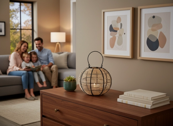 Díky stabilní konstrukci je bezpečnou volbou pro klasické svíčky i LED vložky. Kombinace dřeva a kovu působí elegantně a nadčasově, takže lampion může být výrazným solitérem na podlaze, komodě nebo jako středobod stolní dekorace.