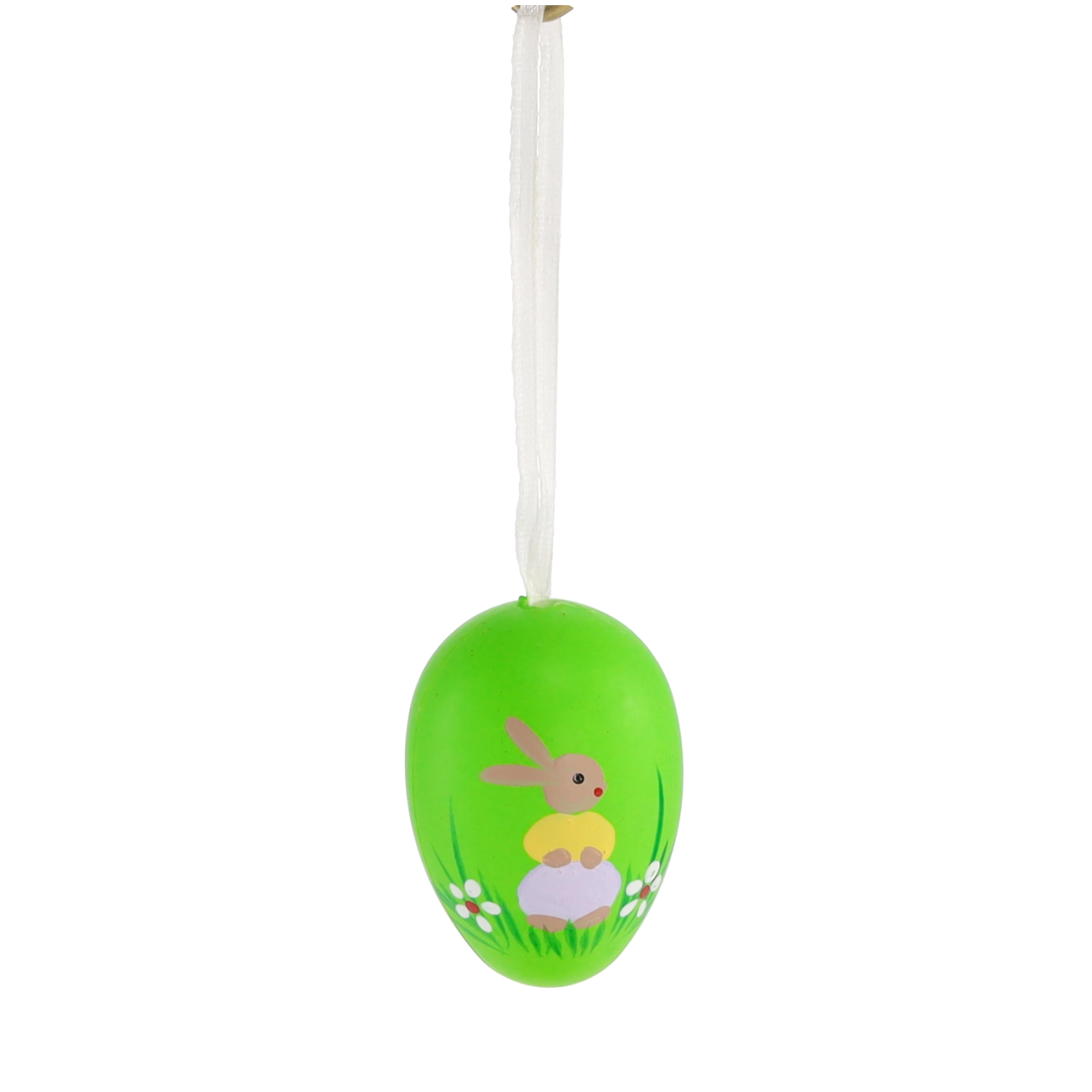 Tato elegantní sada nabízí 6 kusů plastových velikonočních vajíček ve velikosti 4 × 6 cm. Každé je zdobené roztomilým motivem zajíčka v trávě a je opatřené stuhou pro zavěšení. Pastelové odstíny žluté, zelené a levandulové podtrhnou jarní náladu a snadno se kombinují s další výzdobou.