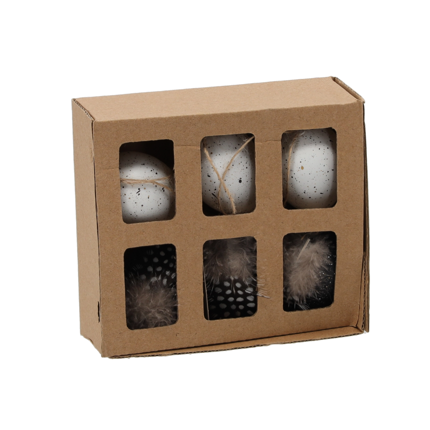 Tato sada 6 dekorativních vajíček v klasické kombinaci bílé a černé skvěle zapadne do moderního i tradičního interiéru. Díky decentnímu vzhledu snadno ladí s přírodními materiály, větvičkami či jarními květinami a pomáhá vytvořit harmonickou atmosféru Velikonoc.
