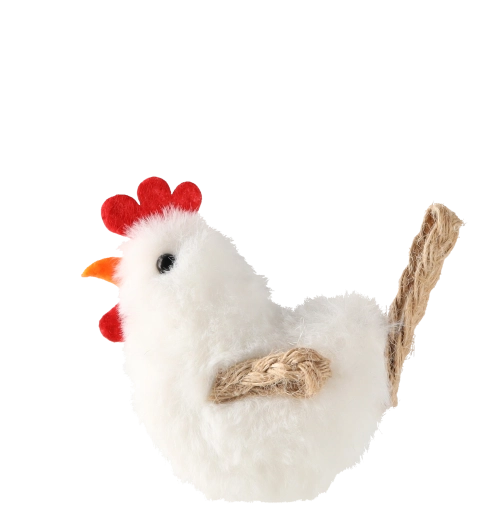 Hnědá, šedá a bílá slepička umožní snadné sladění s ostatní výzdobou a vytvoření pestrých kompozic.