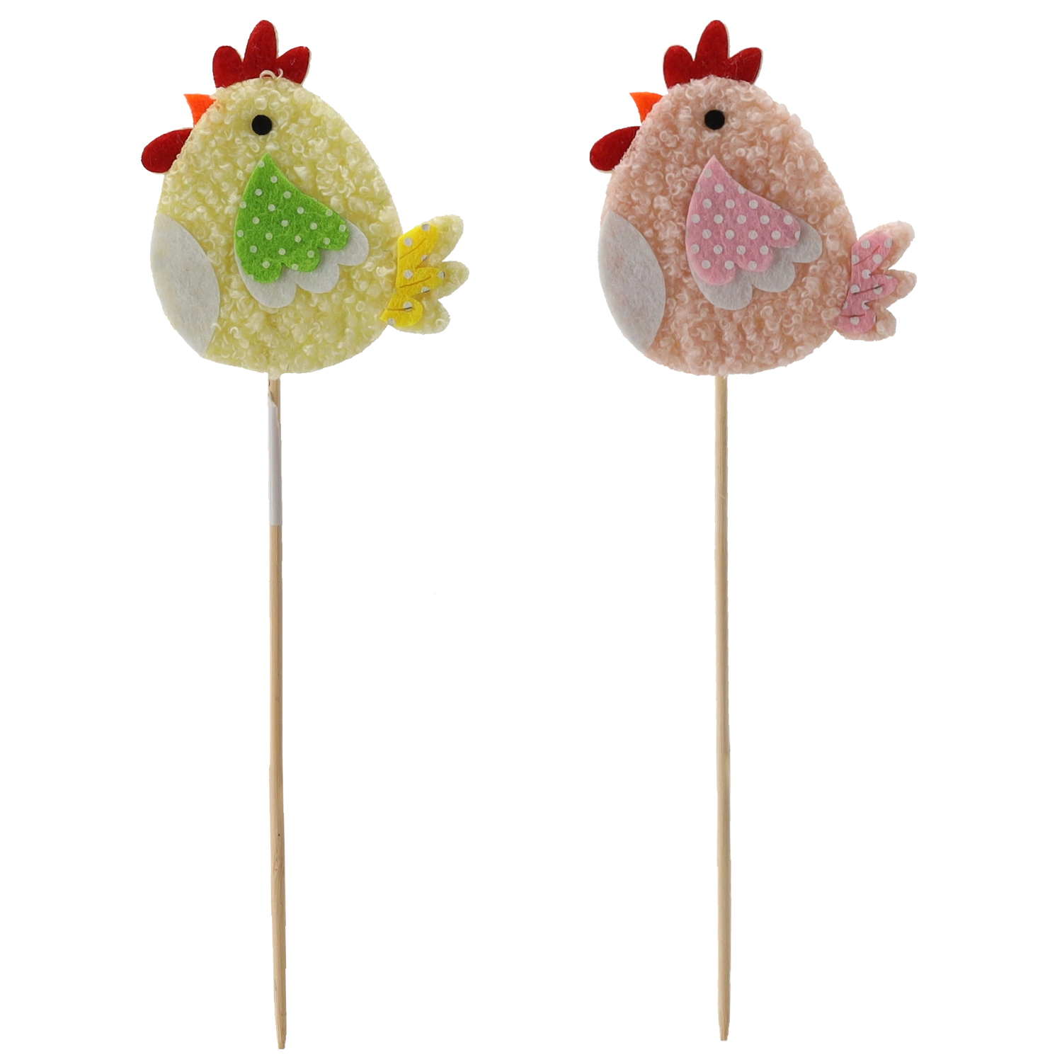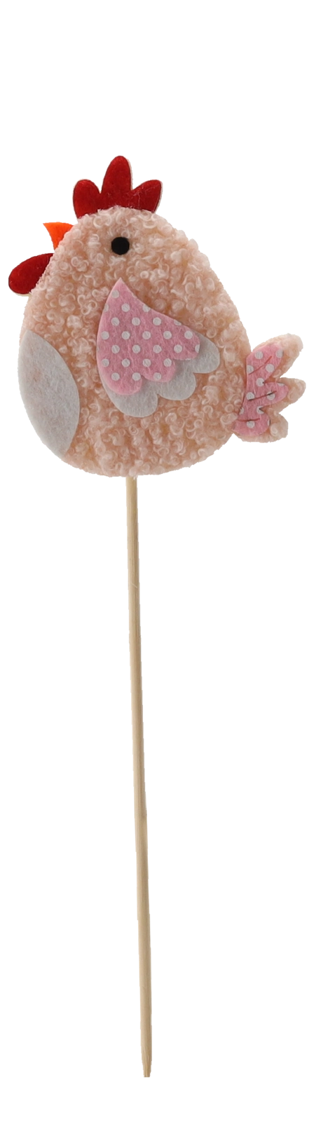 Rozveselte jarní výzdobu s roztomilou slepičkou na špejli – ideální do květináčů, vazeb i košíků. Balení 12 ks ve dvou barevných variantách zajistí pestrou a harmonickou dekoraci. Díky kompaktním rozměrům 7,5 × 8 cm a pevné fixaci na špejli se snadno umisťuje a drží tvar. Kvalitní materiály zaručují odolnost a dlouhou životnost.
