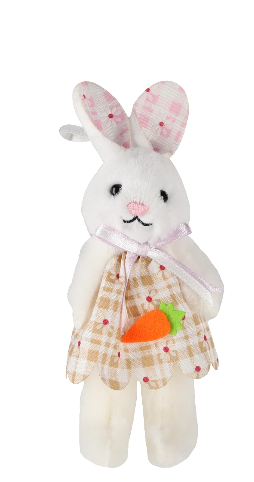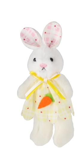 Zajíčci jsou z měkkého plyše s vyšívaným obličejem a malou mrkvičkou – dekorace, která na první pohled zaujme a zútulní interiér.