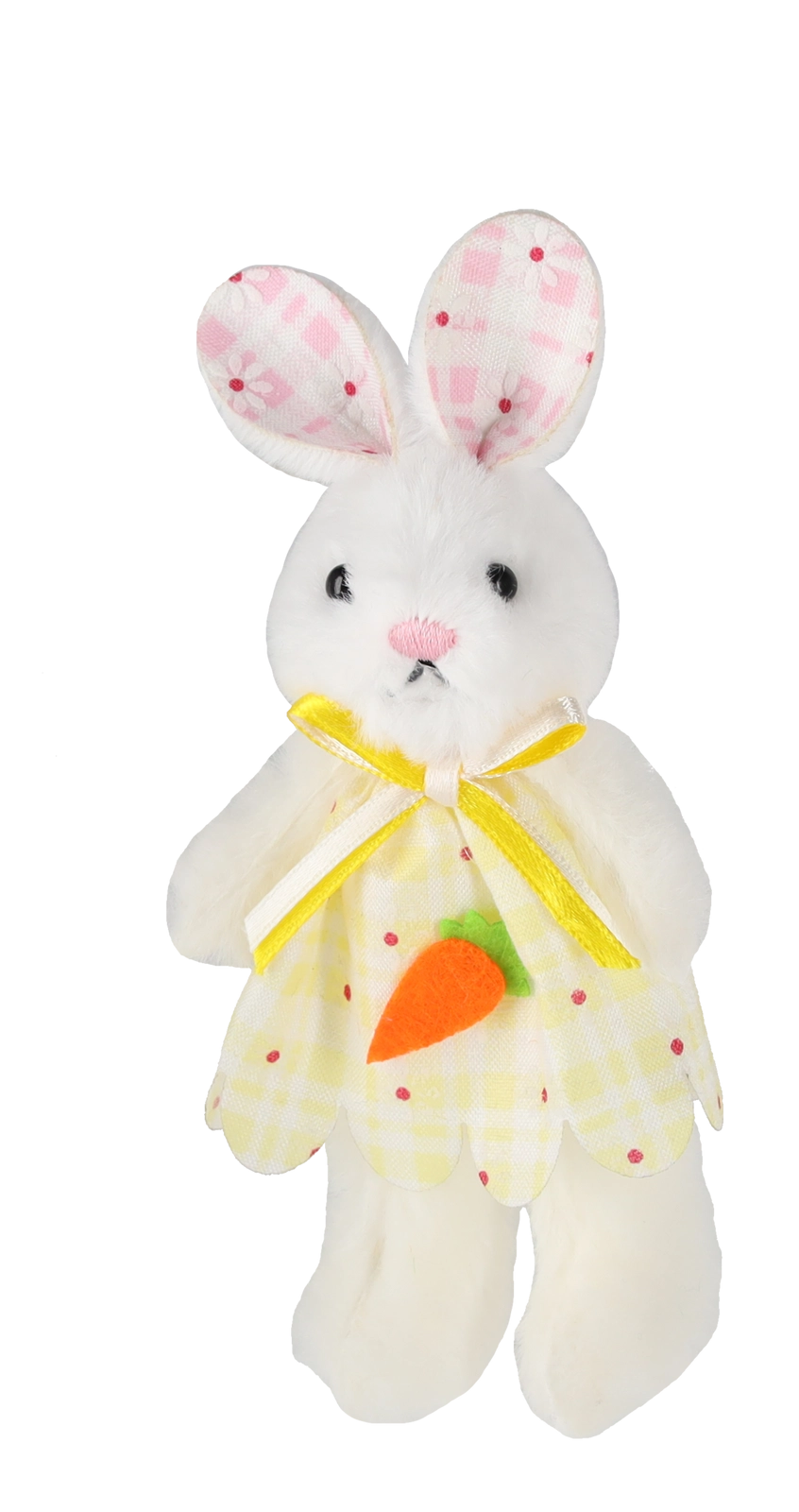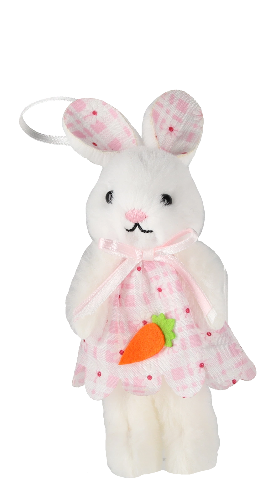 Vytvořte si útulnou jarní výzdobu s hebkými závěsnými zajíčky s mrkví. Každý kousek má poutko pro snadné zavěšení a jemné detailní vyšívání obličeje. Mix tří barev umožňuje krásně kombinovat dekorace v jedné linii i napříč místnostmi.