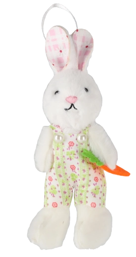 Vytvořte si doma veselou jarní výzdobu s dekorativními závěsnými zajíčky s mrkví. Každý kousek je pečlivě zpracován, má jemné detaily a barevné oblečky, které oživí větvičky, okna i velikonoční věnce. Díky kompaktním rozměrům 6 × 11 cm se hodí do každého interiéru.