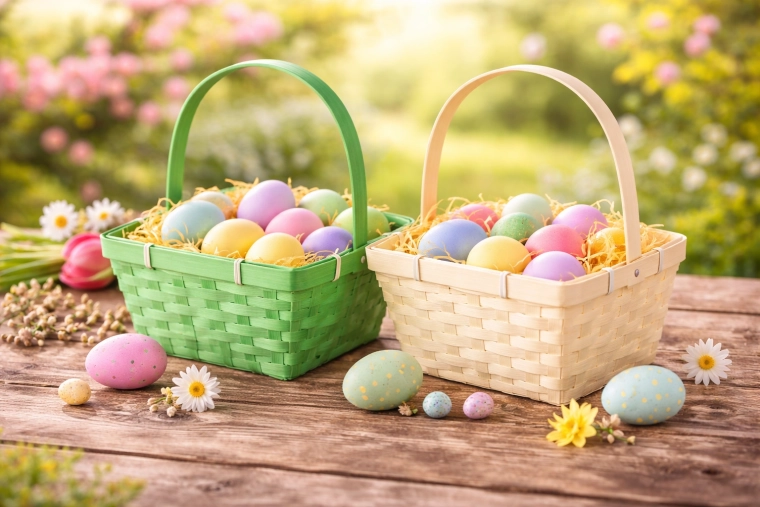 Košíky jsou dodávány v mixu 2 barev, které spolu ladí a vytvářejí svěží jarní atmosféru. Ideální pro domácí výzdobu i dárkové balení.