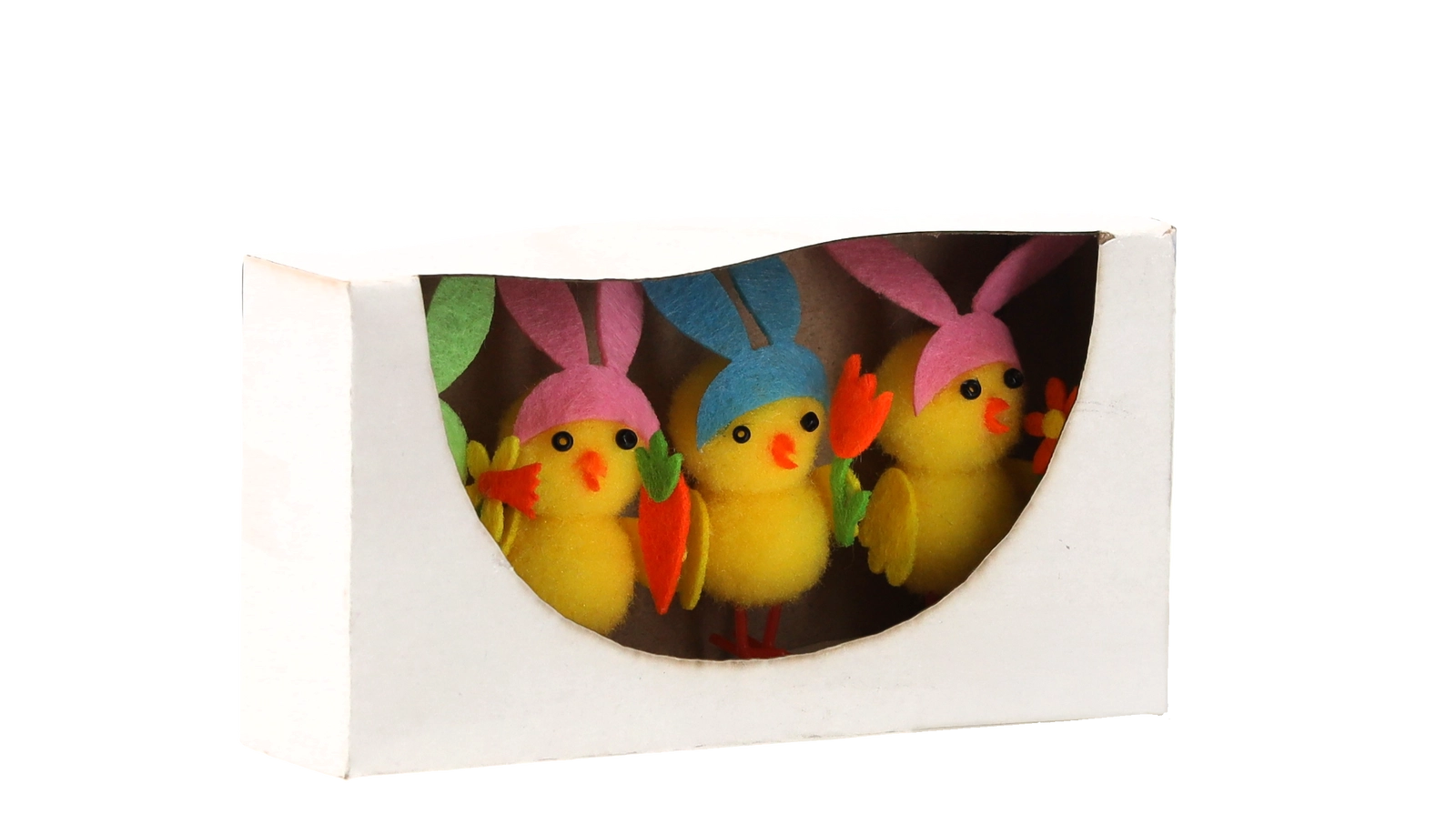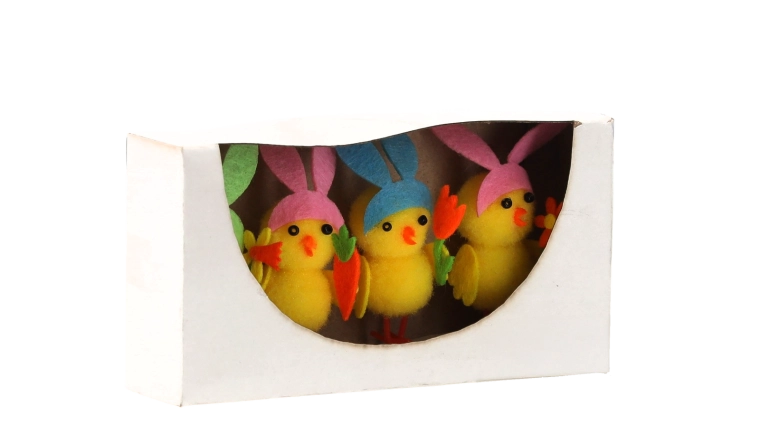 Vytvořte si doma kouzelnou jarní atmosféru se sadou čtyř žlutých kuřátek se zaječími oušky. Tyto dekorace symbolizují příchod jara, radost a obnovu a snadno je zkombinujete s dalšími velikonočními doplňky. Díky odolnému plastovému provedení jsou lehké, bezpečné a vhodné pro opakované použití.
