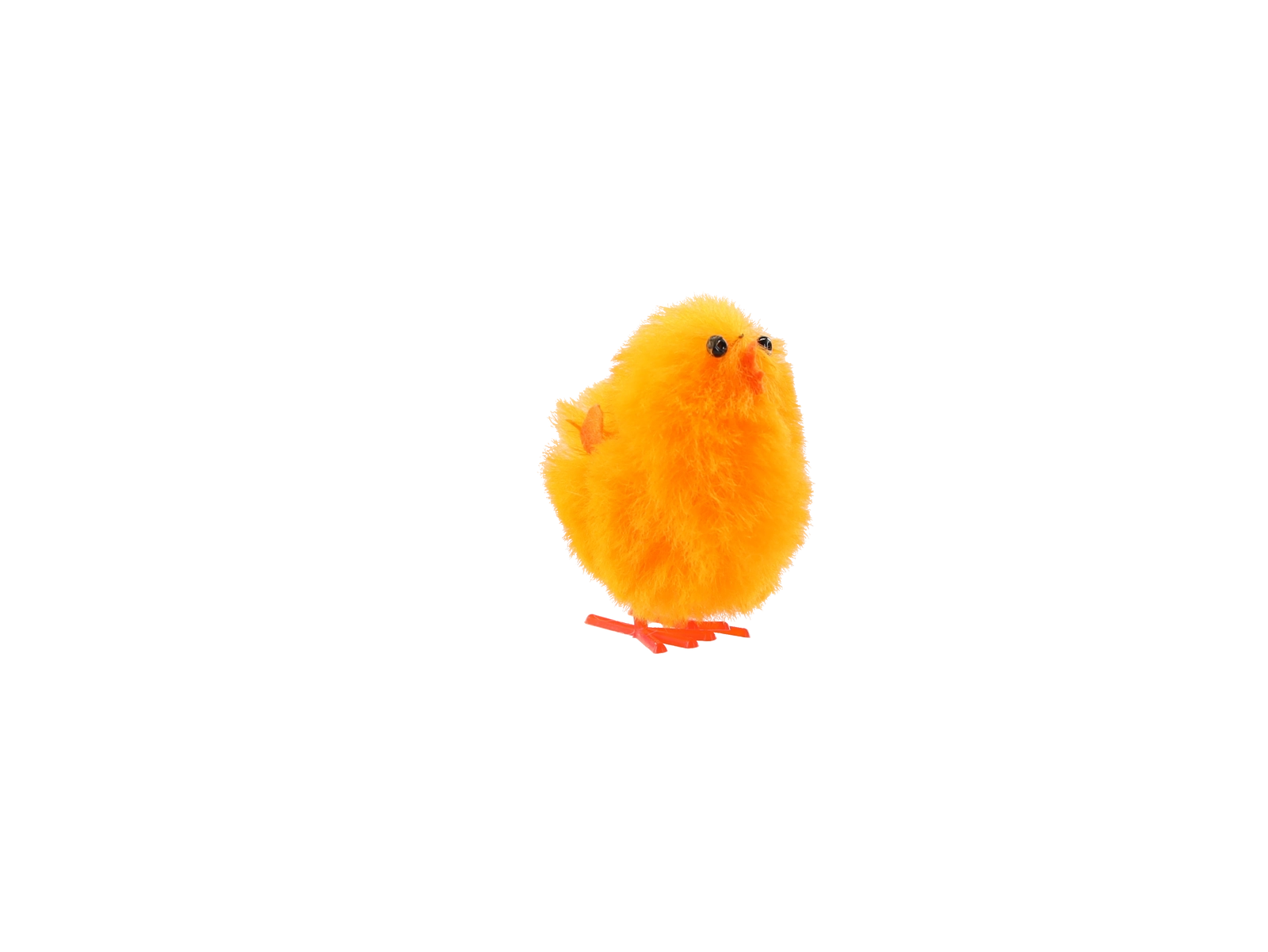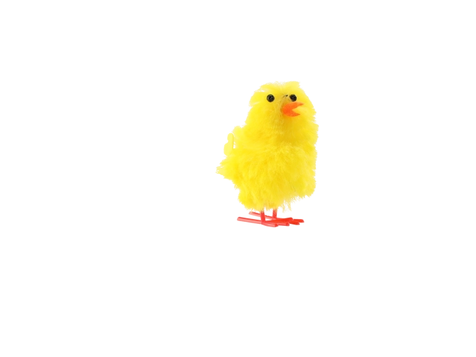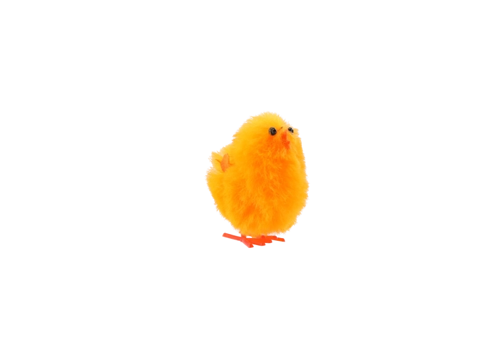 Každé kuřátko má příjemně hebkou strukturu a stojí na oranžových nožkách, takže dobře drží tvar i pozici na rovném povrchu.