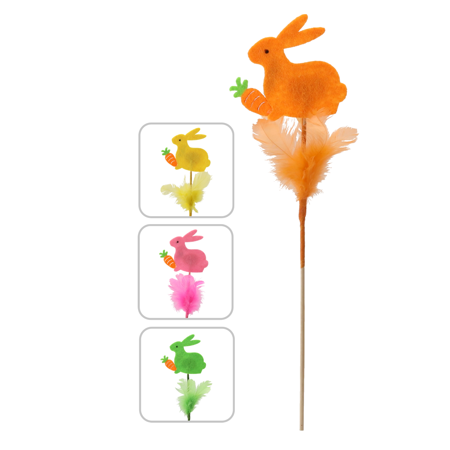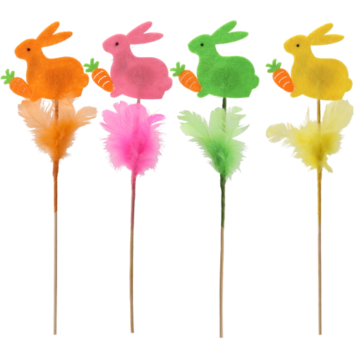 Velikonoční zajíček na špejli s peříčky 29 cm
