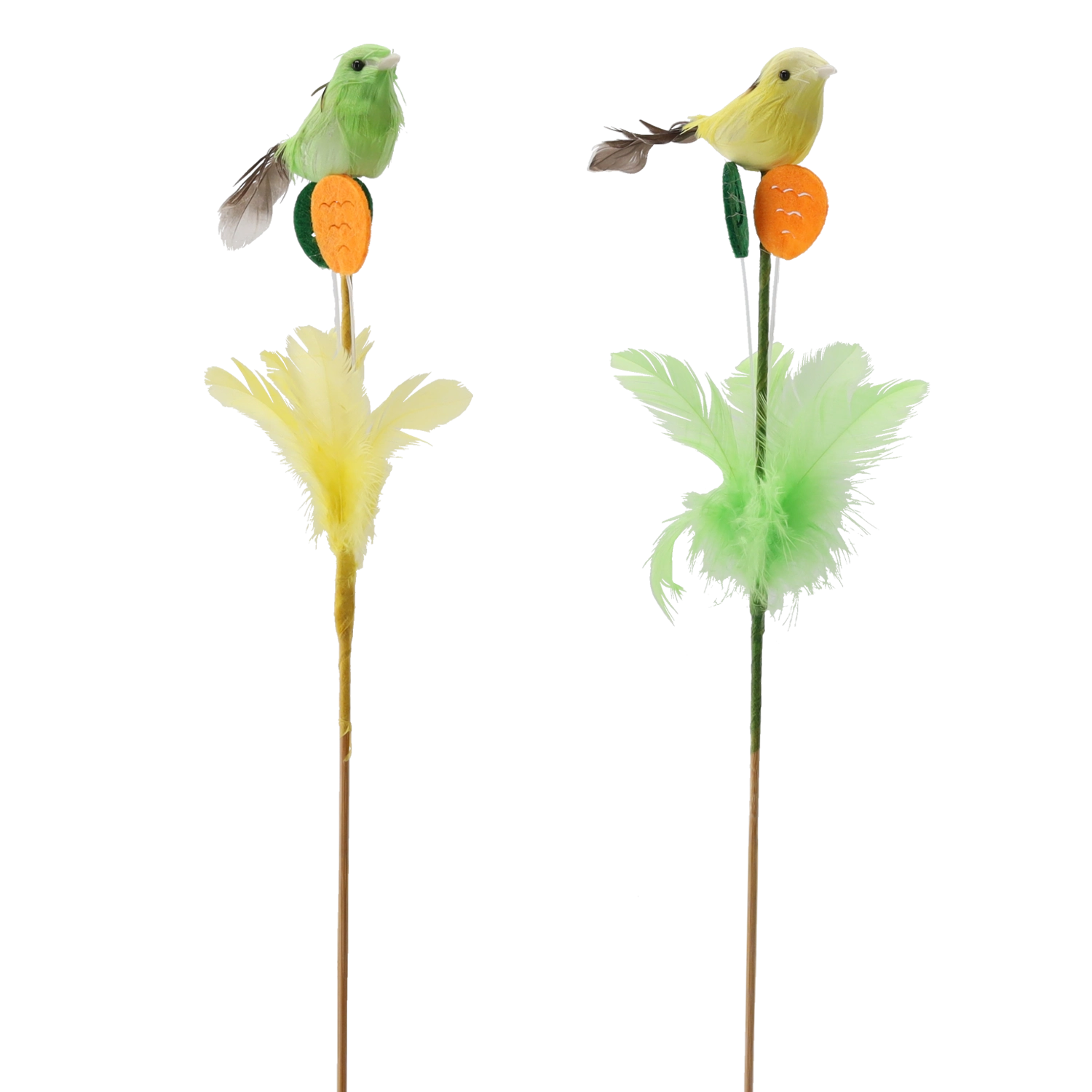 Elegantní velikonoční ozdoba na piku v podobě ptáčka s peříčky o délce 30 cm dodá vašemu interiéru svěží jarní nádech. Díky jemným peříčkům a realistickému zpracování působí přirozeně a vynikne ve květinových aranžmá, velikonočních věncích i jako samostatná dekorace. Dostupná ve dvou barevných variantách, v balení po 12 kusech – ideální pro větší projekty i sdílení s blízkými.