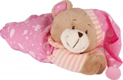 Tento roztomilý medvídek je skvělým společníkem na noc i den. V růžovém pyžamu je přítel, který vám nikdy neuteče, a je ideálním dárkem pro naše nejmenší. Medvídek nejen že rozvíjí dětskou představivost, ale nabízí možnost zavěšení, takže ho můžete snadno připevnit na dětskou postýlku nebo kočárek. Hraje uklidňující ukolébavku „Dobrý večer, dobrou noc“, která pomůže vašemu dítěti snadno usnout.