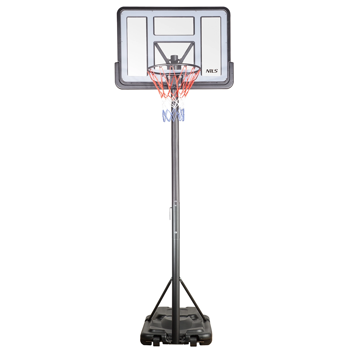 Mobilní basketbalový koš NILS je ideální volbou pro domácí použití na zahradě či v příjezdové cestě. Díky plynulému nastavení výšky v širokém rozsahu snadno přizpůsobíte koš dětem i dospělým. Transparentní deska z PVC v kombinaci s ocelovou obručí a síťkou z nylonu zaručuje dlouhou životnost a autentický herní pocit.