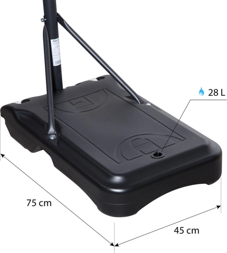 Díky základně s objemem 28 litrů (voda/písek) a integrovaným kolečkům získáte stabilitu i plnou mobilitu. Regulace výšky ve čtyřech krocích po 11,5 cm umožňuje přizpůsobit koš aktuálním potřebám hráčů a tréninkovým cílům.