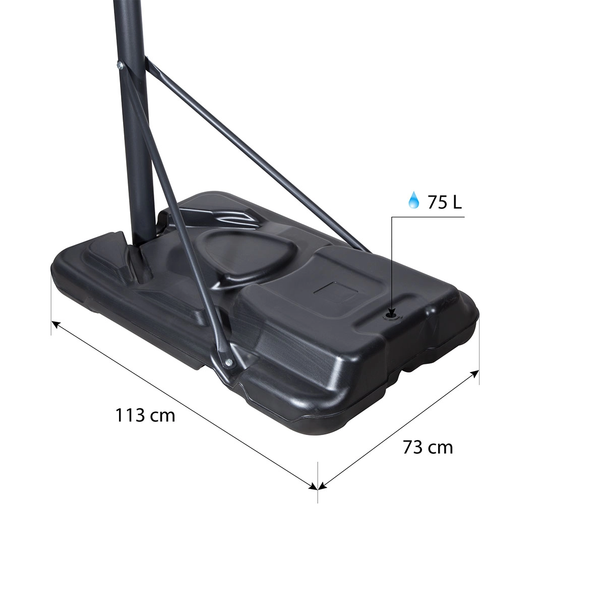 Intuitivní mechanismus změny výšky s madlem a tlačítkem umožňuje rychlé přenastavení do jedné z pěti úrovní. Masivní základna s kapacitou 75 litrů vody zajišťuje vysokou stabilitu a díky integrovaným kolečkům koš snadno přesunete tam, kde zrovna chcete hrát.