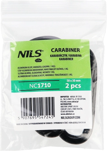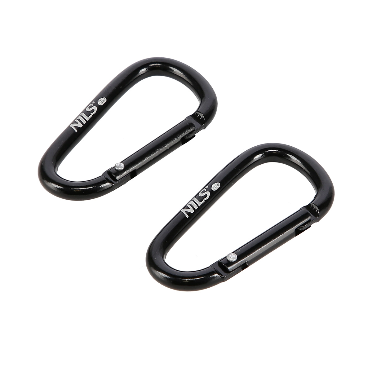 Praktická sada 2 hliníkových karabin NILS Camp pro každodenní použití v přírodě i ve městě. Odolná anodizovaná povrchová úprava chrání proti korozi, pružinový zámek zajišťuje rychlé připnutí a každá karabina unese až 3 kg – ideální na klíče, láhve, příslušenství na batoh či organizaci vybavení ve stanu.