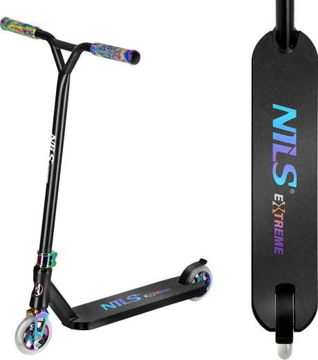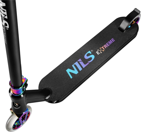 Freestylová koloběžka NILS Extreme HS024 Pro je navržena pro děti, mládež i dospělé, kteří chtějí spolehlivý a robustní model do skateparku, na U-rampu i městský asfalt. Pevná konstrukce bez skládacího mechanismu a bez nastavitelné výšky řídítek maximalizuje odolnost při dopadech a náročných tricích.