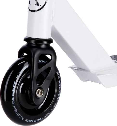 Kola z PU 100 × 24 mm v kombinaci s ložisky ABEC 7 a odolnou kovovou vidlicí poskytují plynulou jízdu, rychlou akceleraci a stabilní vedení stopy.