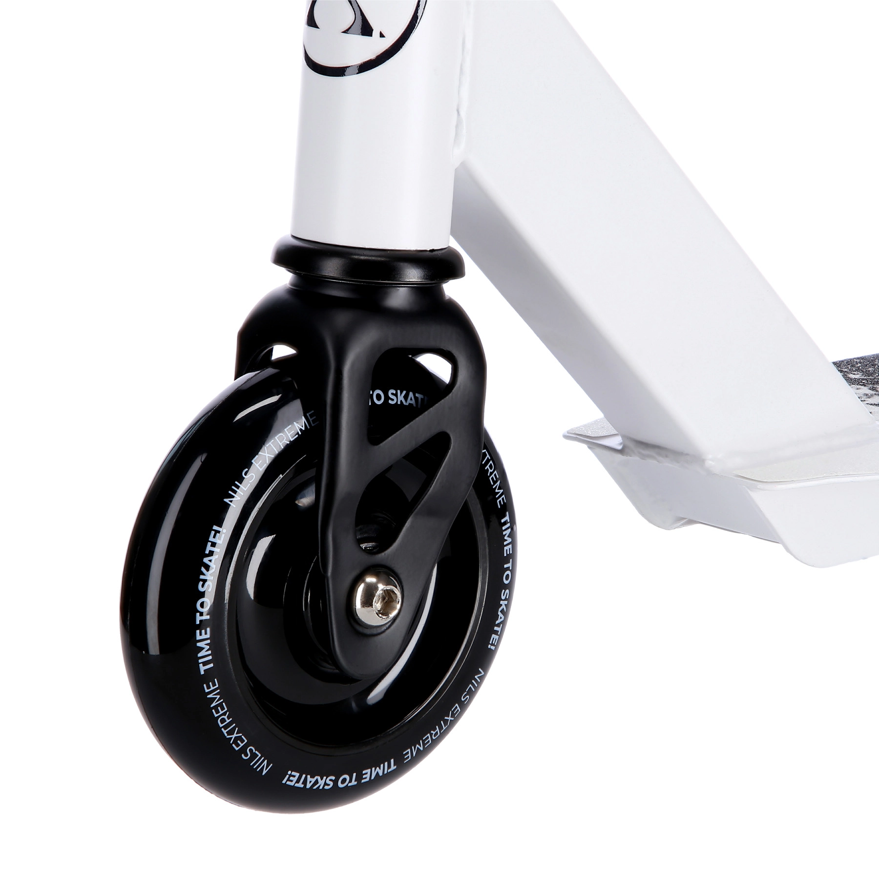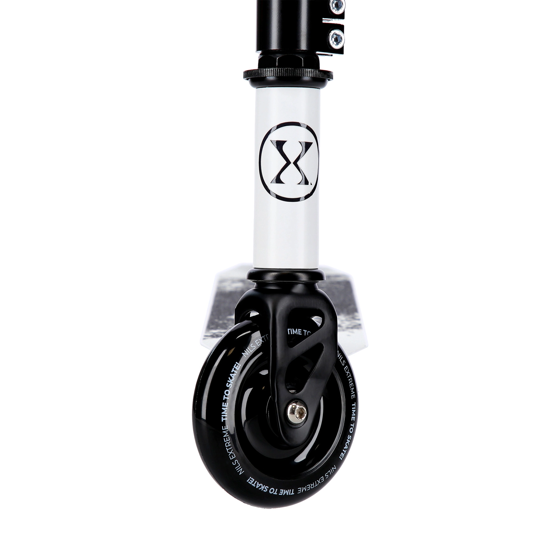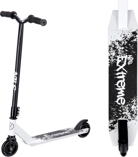 Model HS138 je navržen pro triky a náročné použití. Zesílená platforma, pevná řídítka bez možnosti nastavení výšky a tuhý svařovaný rám zvyšují stabilitu, odolnost a kontrolu nad koloběžkou. Nízká hmotnost 2,8 kg usnadňuje rotace, skoky a další freestyle manévry.