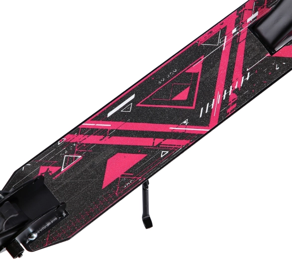 Odolný, přitom lehký rám snadno složíte pro převoz v MHD či autě. Integrovaný sklopný stojánek umožní koloběžku rychle a bezpečně zaparkovat.