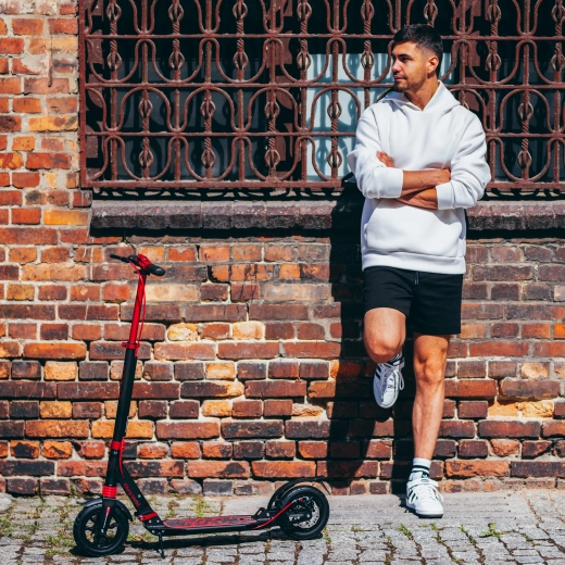 Pro maximální bezpečí je zadní kolo vybaveno kotoučovou brzdou a také nášlapnou brzdou s integrovanou odrazkou pro lepší viditelnost za šera. Nastavitelná výška řídítek a ergonomické gumové gripy zajistí pohodlné držení i při delších jízdách. Koloběžku snadno složíte do kompaktních rozměrů a díky odnímatelnému ramennímu popruhu ji pohodlně přenesete do MHD, auta či uložíte doma.