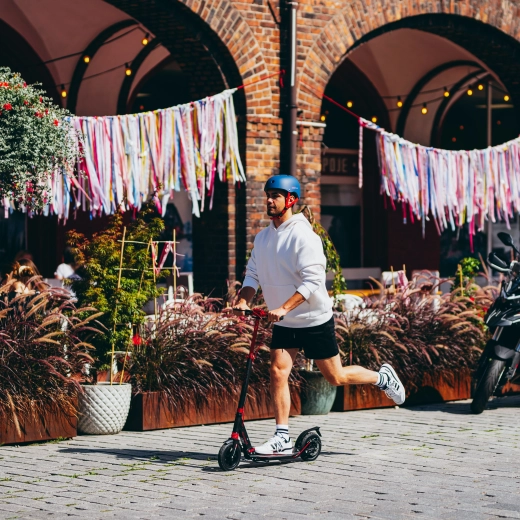 Přední i zadní tlumič účinně pohlcují nerovnosti městských ulic. V kombinaci s nafukovacími 200mm koly jedete plynuleji a s menší únavou.