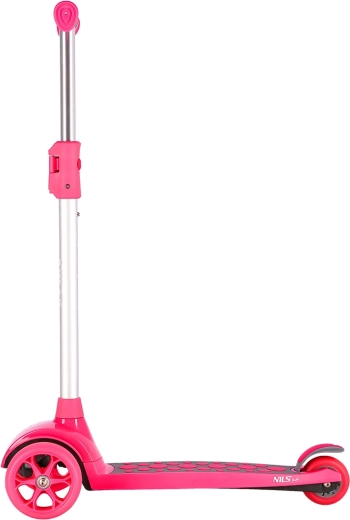 Dětská koloběžka NILS Fun je navržena pro malé jezdce, kteří se učí držet rovnováhu. Stabilní tříkolová konstrukce, manévrování přenášením váhy a gumové gripy se zarážkami zajišťují bezpečnou a pohodlnou jízdu. Nízké a pogumované stupátko přispívá k jistému postoji.