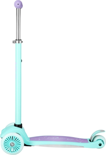 Tato dětská koloběžka kombinuje bezpečnost, pohodlí a moderní design. Dvě přední PU kolečka s LED diodami zajišťují plynulou jízdu a lepší viditelnost, zatímco široká protiskluzová platforma se světelným efektem podporuje jistotu při odrazu i došlapu. Ložiska ABEC 7 přispívají k tichému a hladkému chodu.