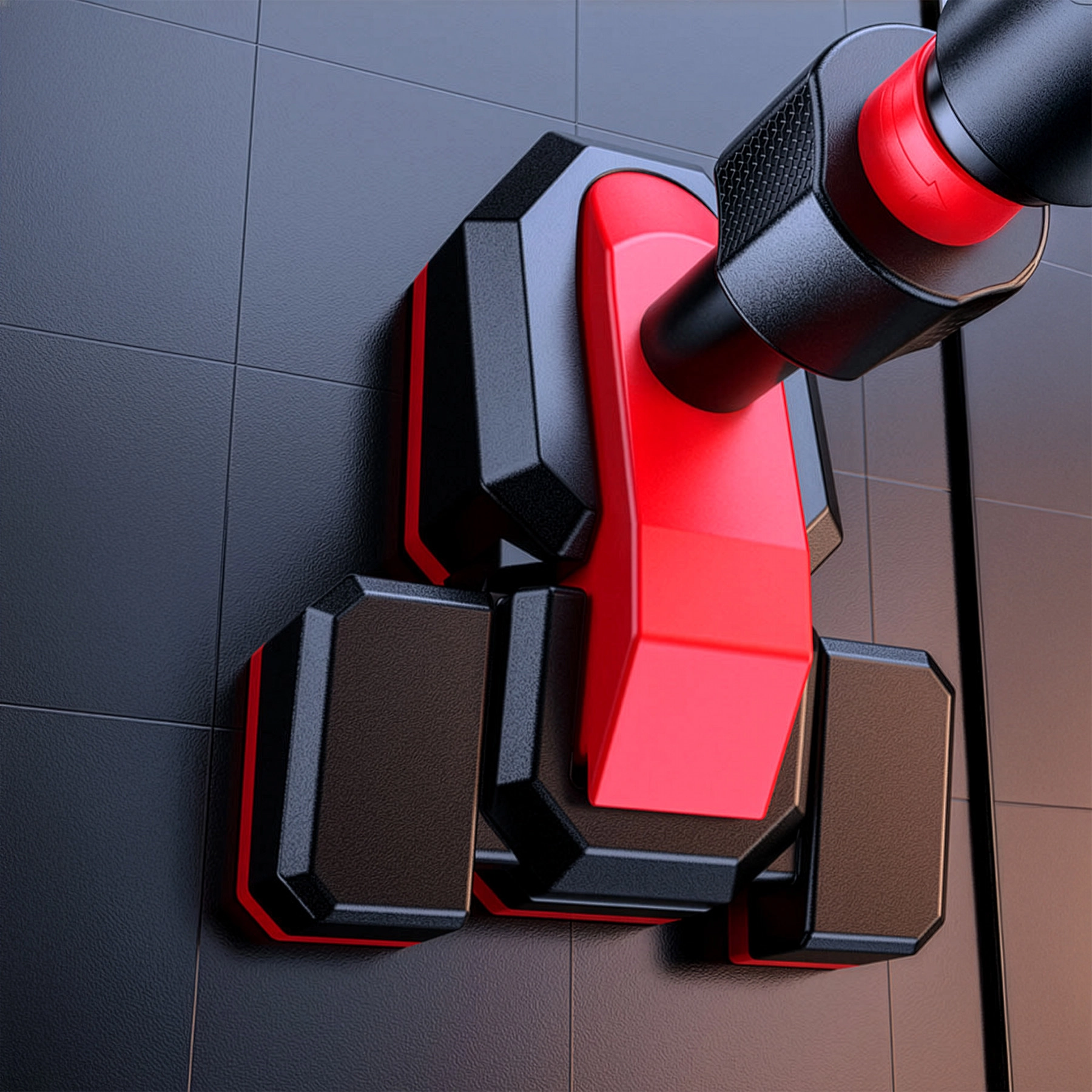 Tři široké protiskluzové opěrné plochy s hustou strukturou maximalizují kontakt se zárubní, zvyšují tření a chrání povrchy před poškrábáním. Montáž je zcela bez vrtání – nastavíte délku, zajistíte zámek a díky integrované vodováze snadno vyrovnáte. Měkké, tvarově stálé pěnové rukojeti zajišťují pohodlný a jistý úchop i při delším cvičení.