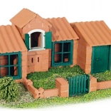 Detailní domek s dvířky, okenicemi a venkovní plochou motivuje k fantazii a rozvoji stavebních dovedností.
