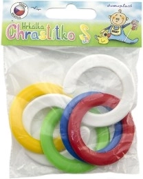 Chrastítko kousací kroužky je ideální hračkou pro malé děti. Jeho lehký design a pestré barvy zajišťují, že si ho miminko snadno oblíbí.